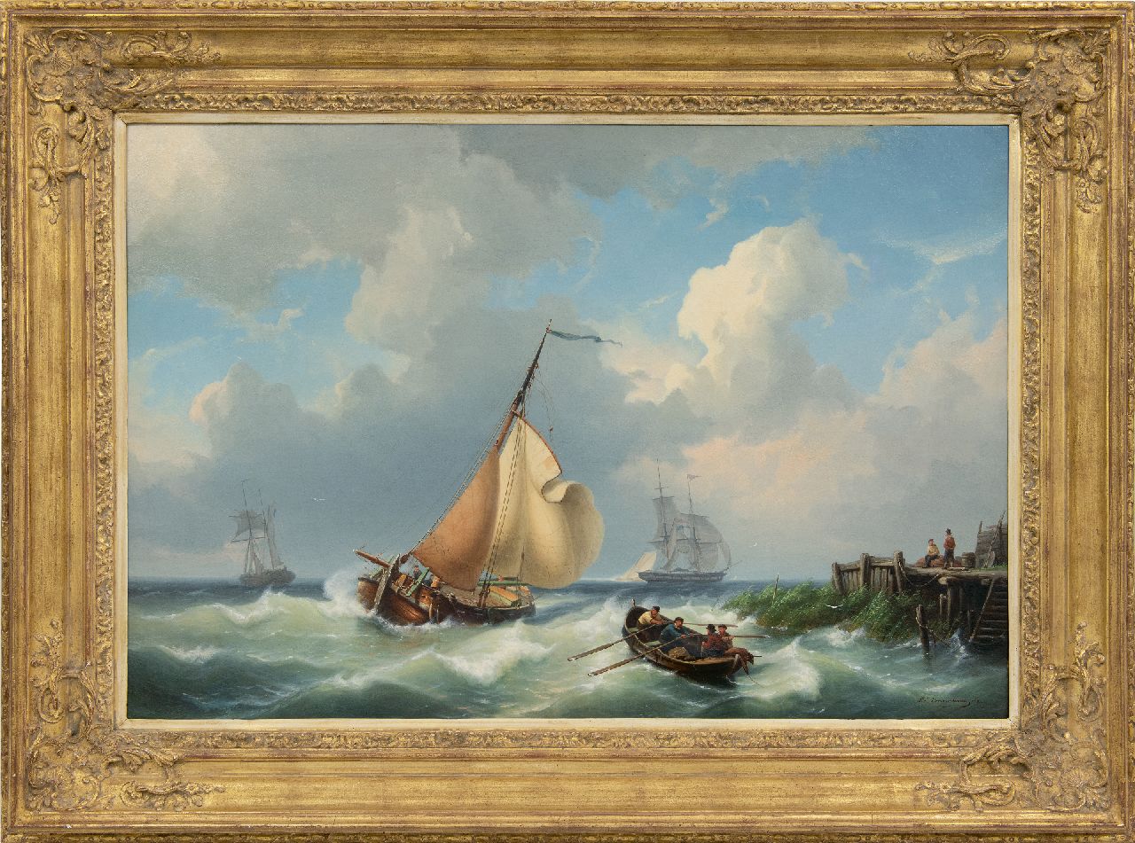Christiaan Dommelshuizen kunstwerk • schilderij • te koop Zeilschepen voor de kust bij stormachtig weer