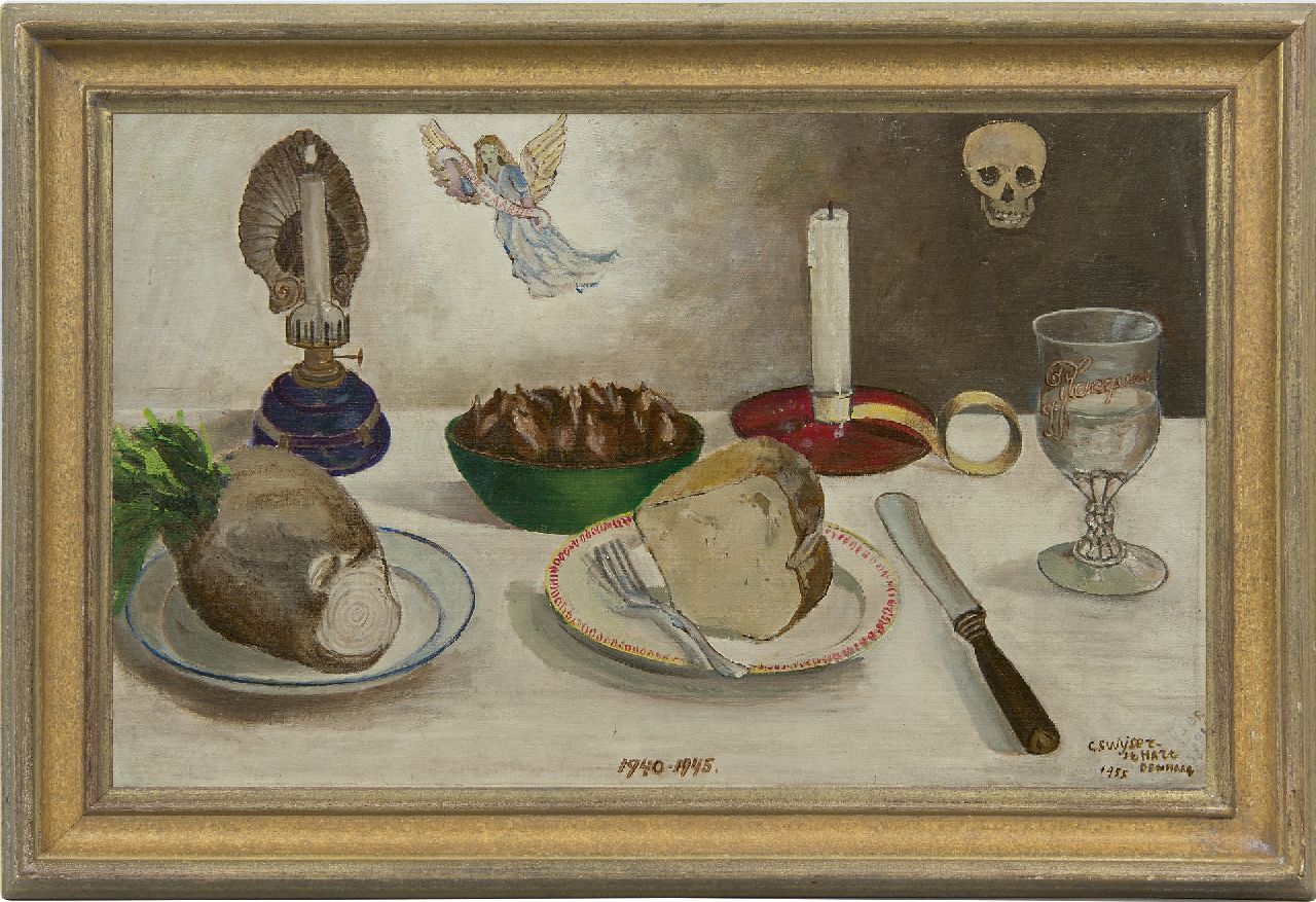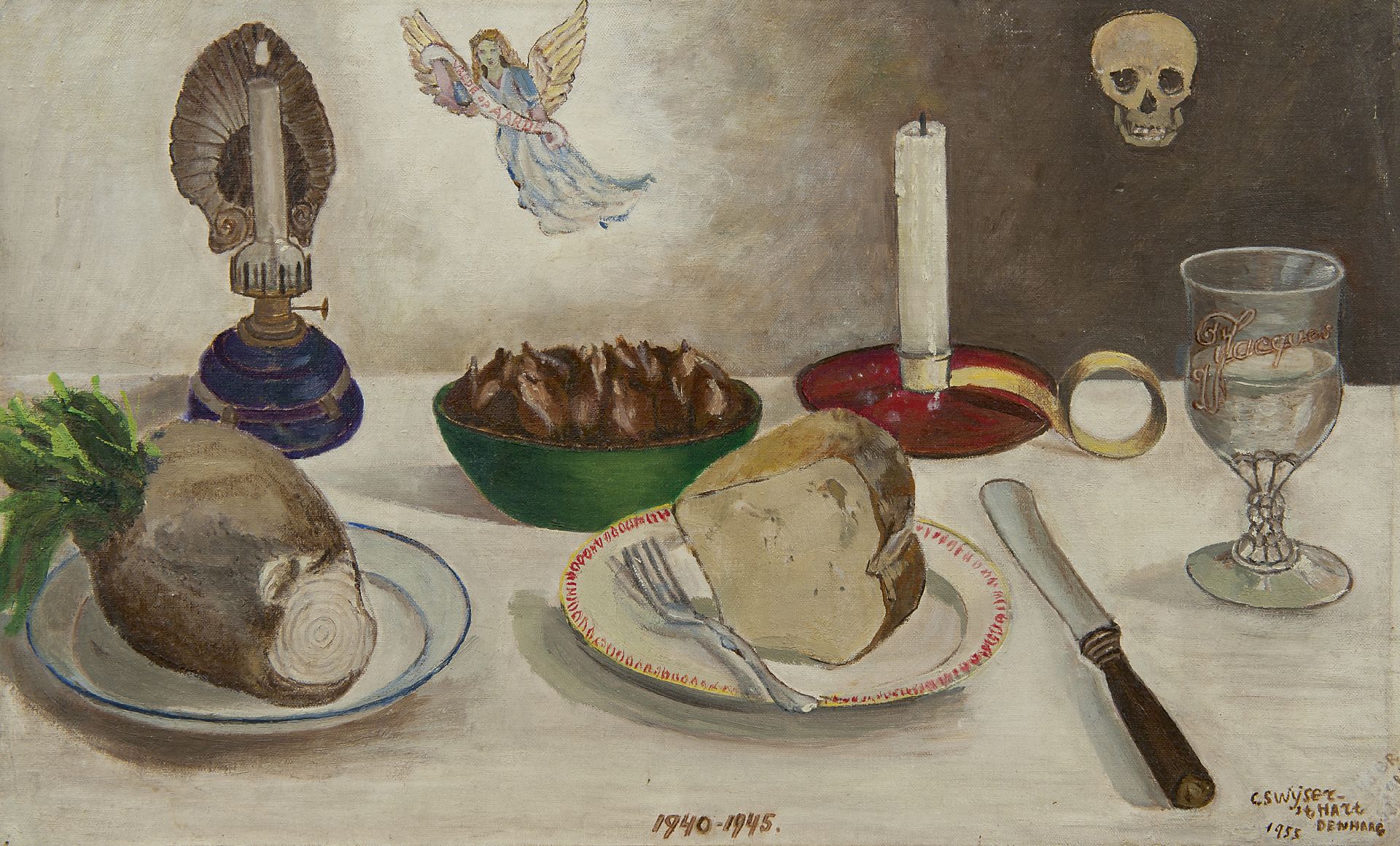 Christina Swijser-’t Hart kunstwerk • schilderij • te koop 'Feestmaaltijd' 1940-1945