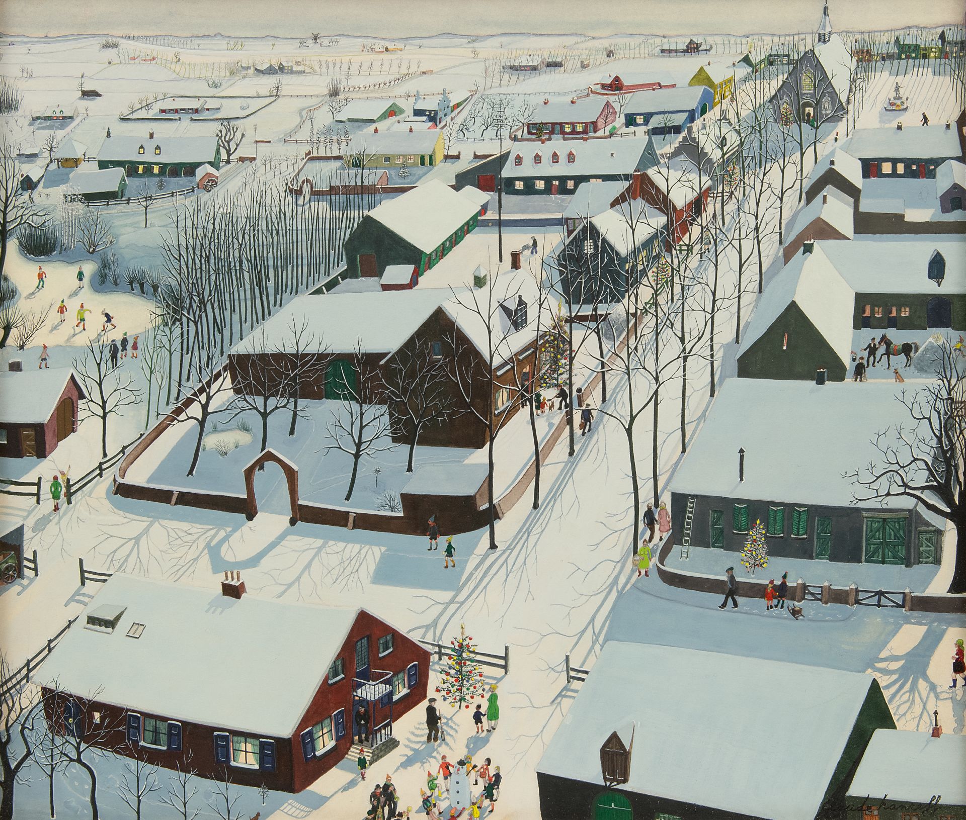 Claude Nanreff kunstwerk • aquarel • tekening • voorheen te koop Kerstavond