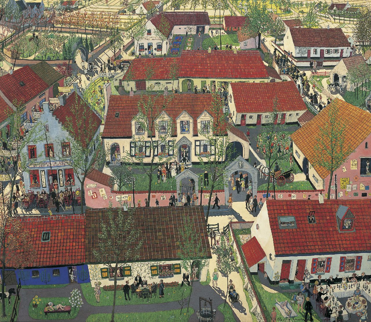 Claude Nanreff, geboren in 1908 in Gent, behoort tot de Belgische naïeve schilders van de 20e eeuw. In hun schilderijen presenteren deze schilders hun omgeving of geven hun kijk op het dagelijks leven op een geheel eigen manier, los van heersende stromingen en kunstrichtingen. De schilderijen van Nanreff kenmerken zich door hun grappige composities met veel figuren en een vaak humoristische ondertoon. Wat stijl betreft zijn ze fijn uitgewerkt.