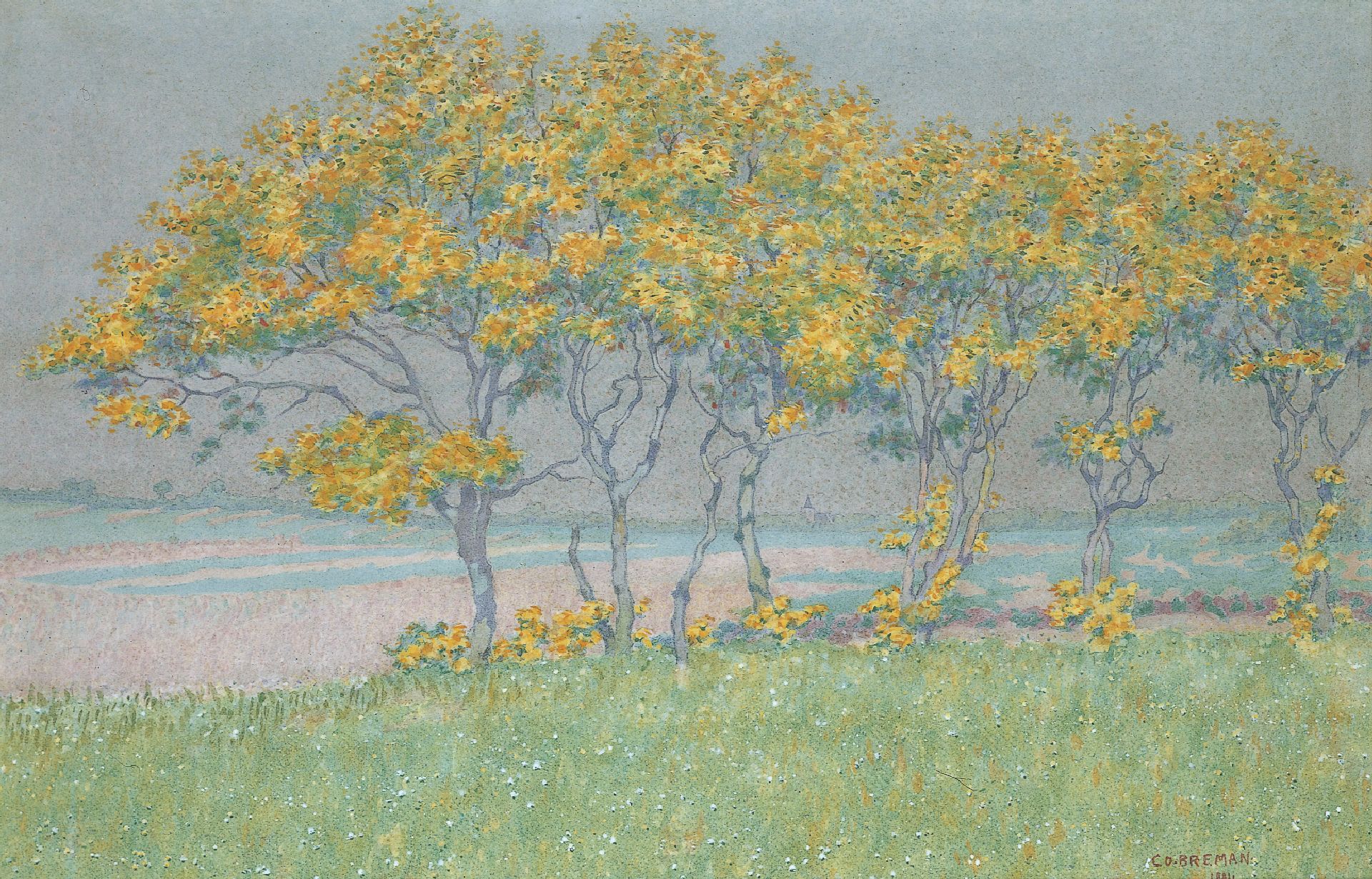 Co Breman kunstwerk • aquarel • tekening • voorheen te koop Bomen bij Blaricum