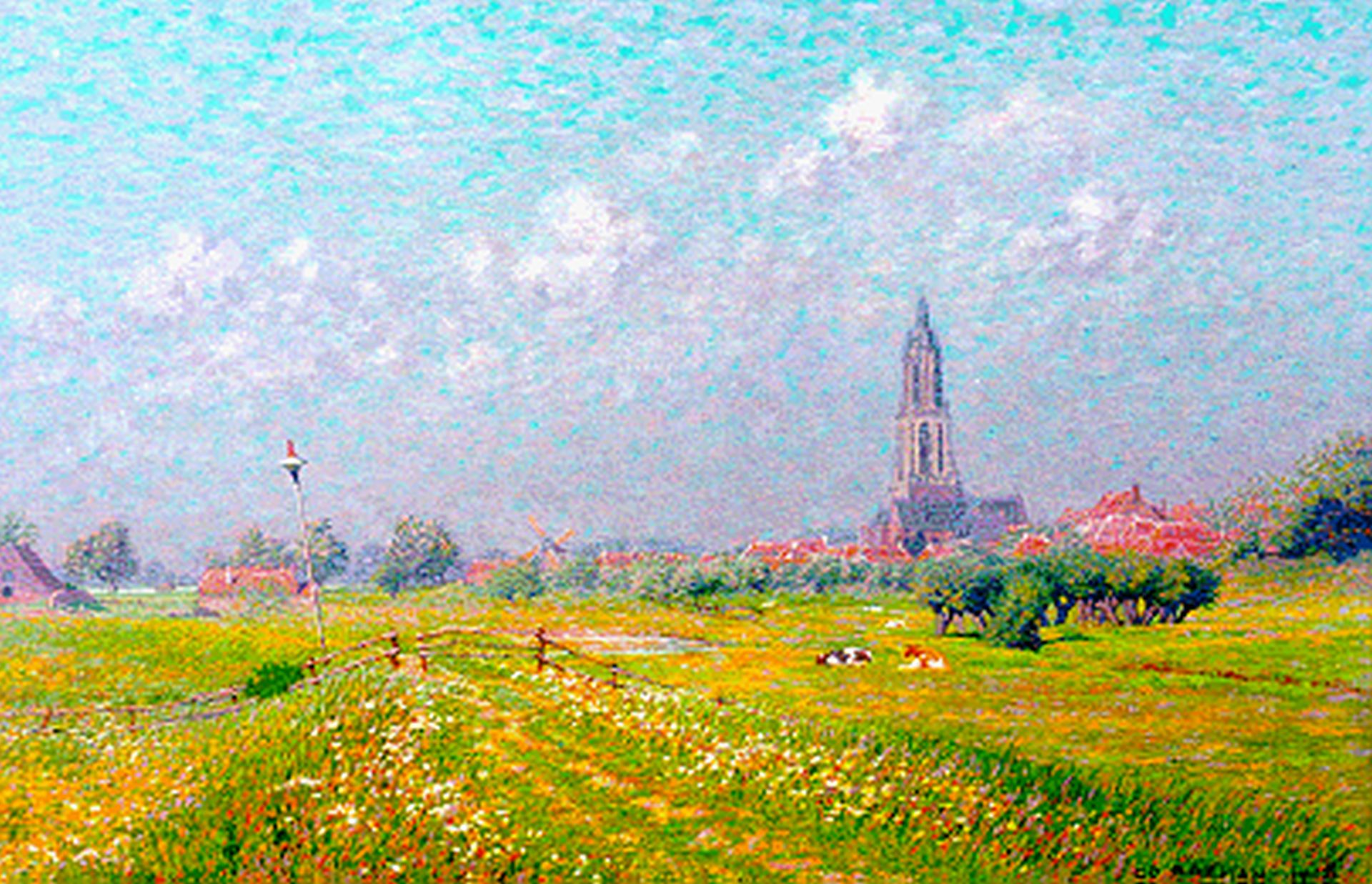 olieverf op doek 46,0 x 70,5 cm, gesigneerd rechtsonder en gedateerd 1908