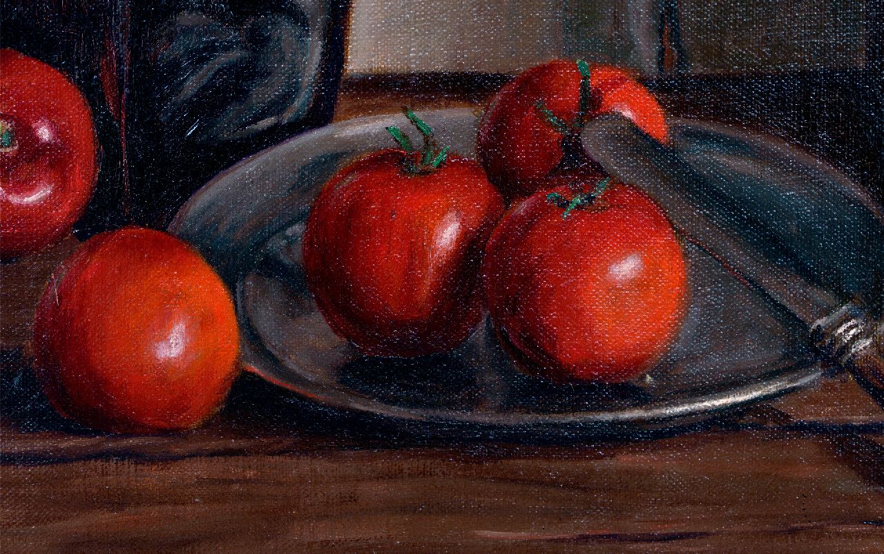 Co Hansen kunstwerk • schilderij • te koop Stilleven met vaas en tomaten