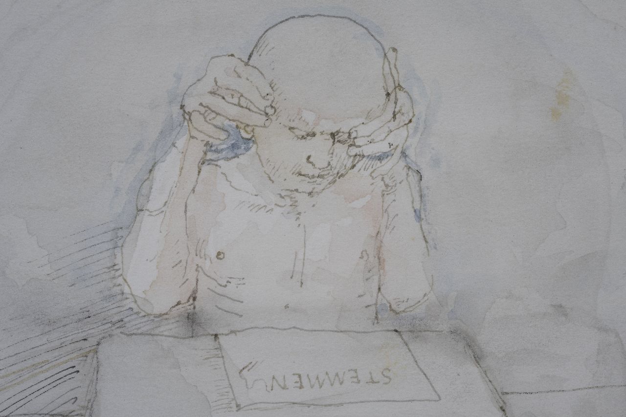 Co Westerik kunstwerk • aquarel • tekening • voorheen te koop Man aan tafel met stemmen