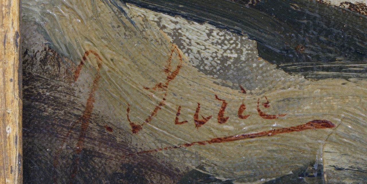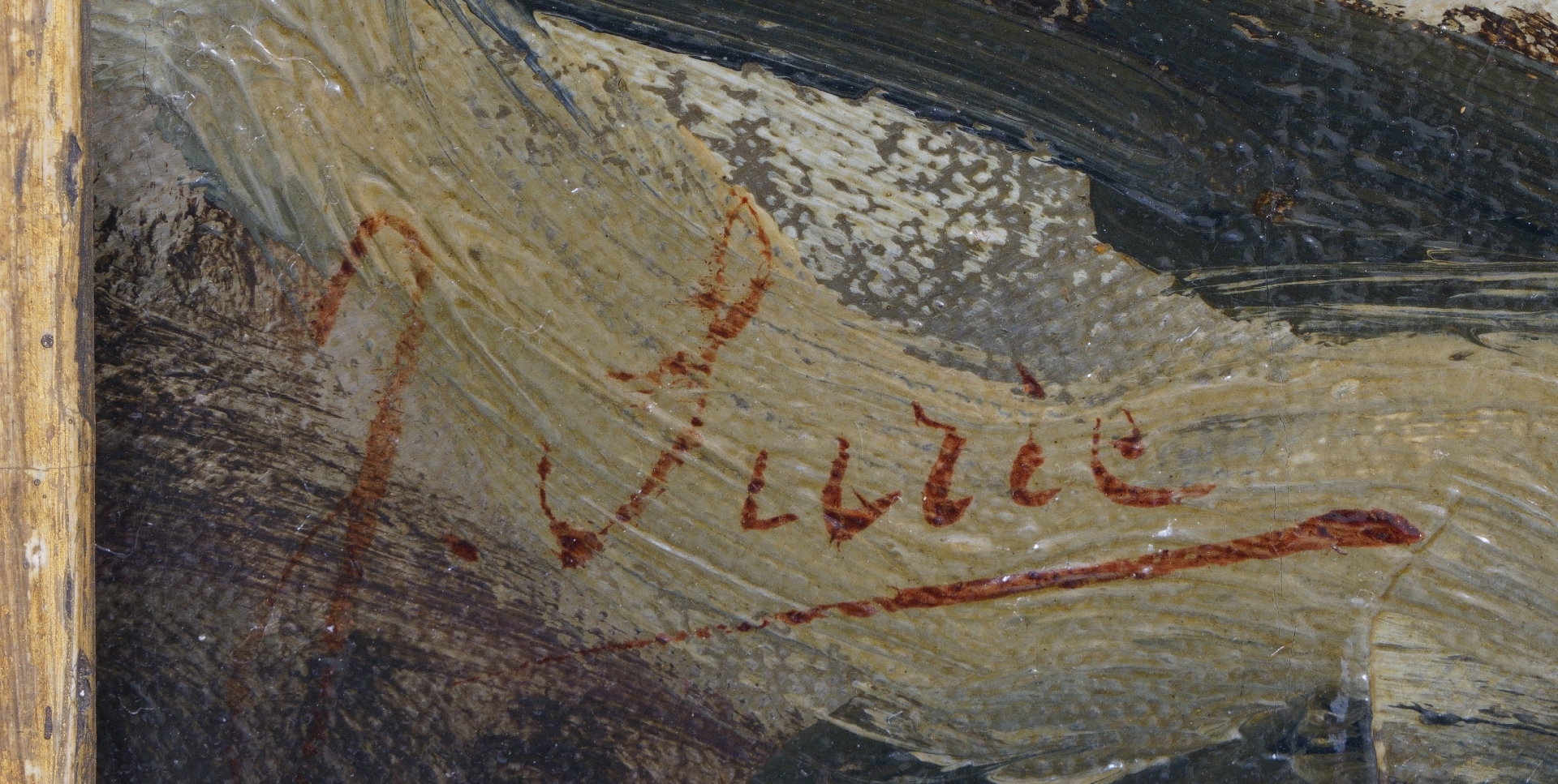 olieverf op doek 37,8 x 42,5 cm, gesigneerd linksonder en op doekomslag