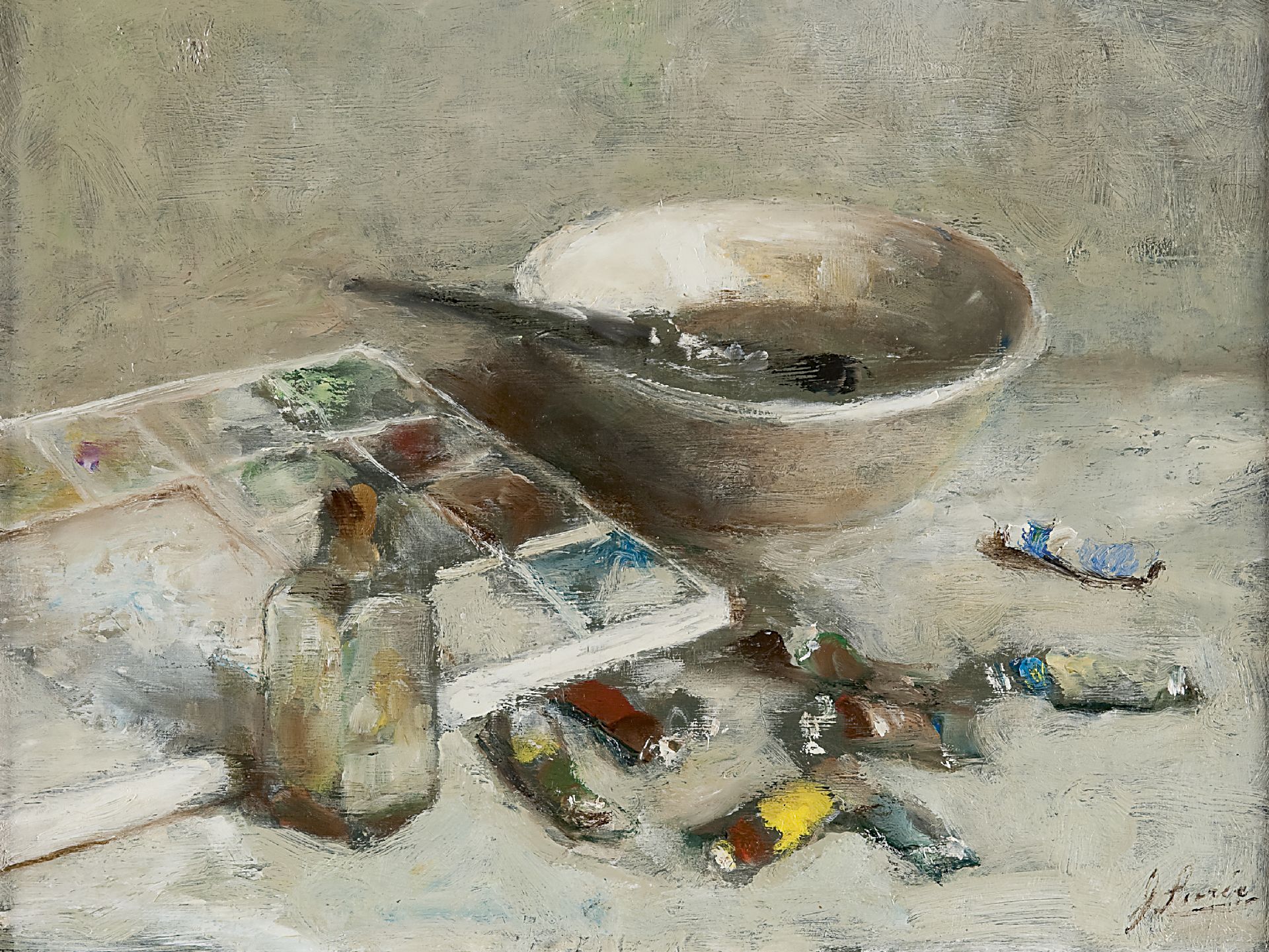 Coba Surie kunstwerk • schilderij • voorheen te koop Stilleven van schildersattributen