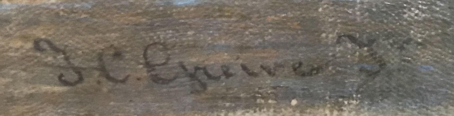 Literatuur: vgl.: Jan Greive, 'Johan Conrad Greive (1837-1891). Gewoon een vakman', Schiedam 2013, pag. 108, afb. 148 (ets met hetzelfde onderwerp) en pag. 109, afb. 149 (Rozenburg aardewerk-plaquette met hetzelfde onderwerp).
