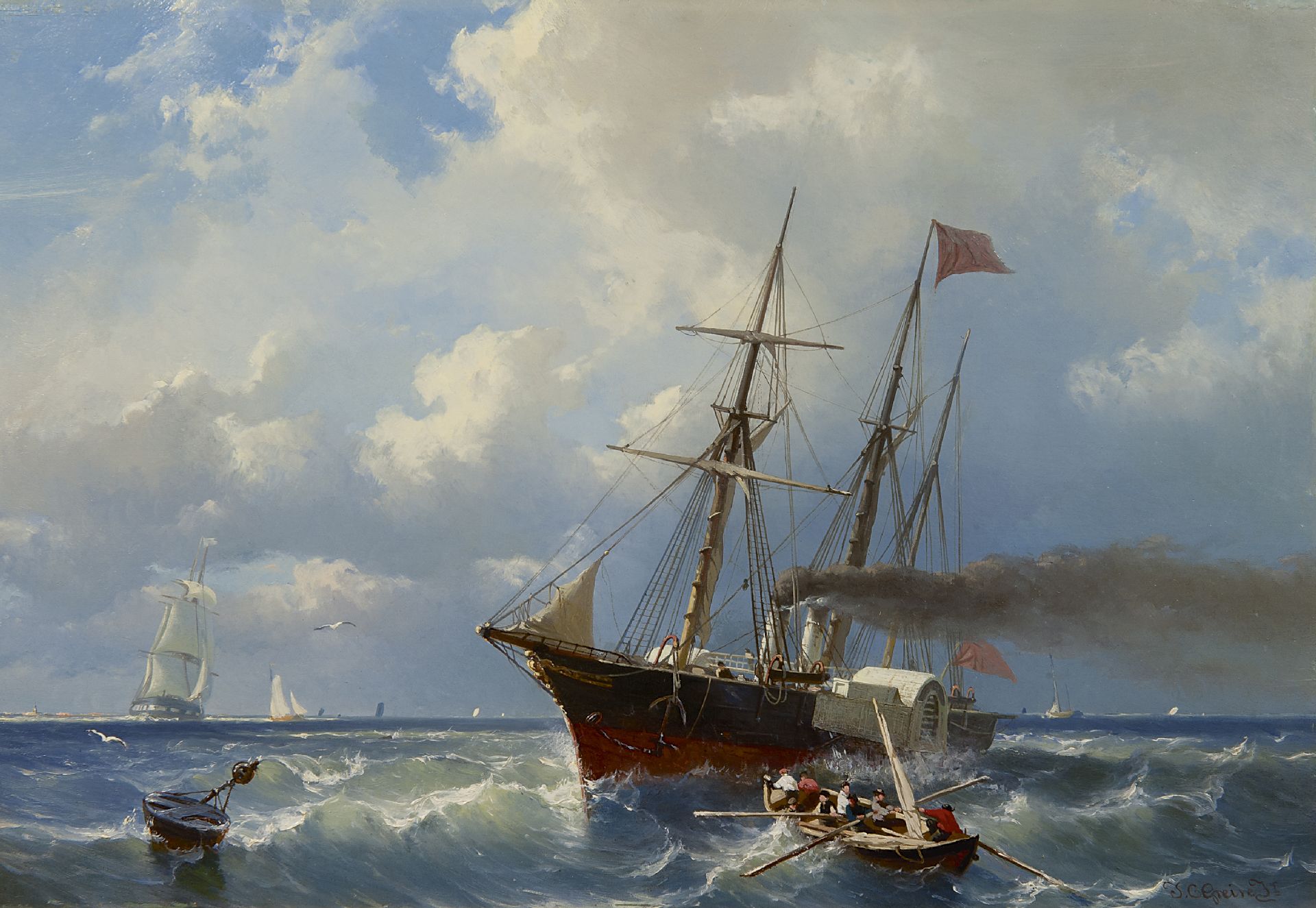 Coen Greive kunstwerk • schilderij • voorheen te koop Raderboot voor de kust