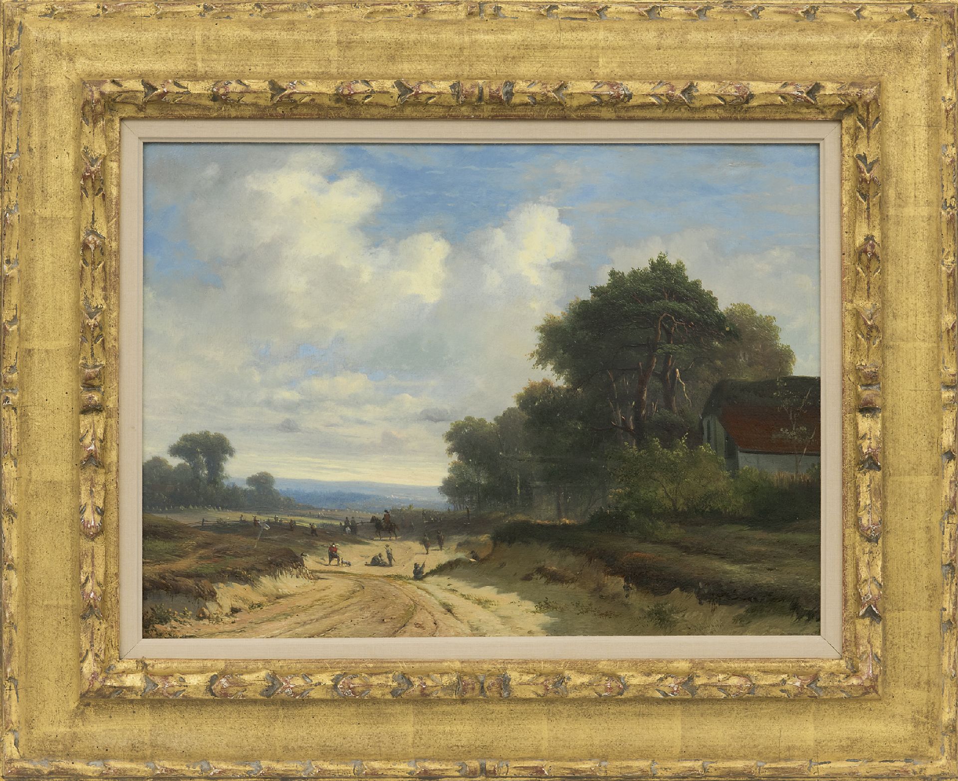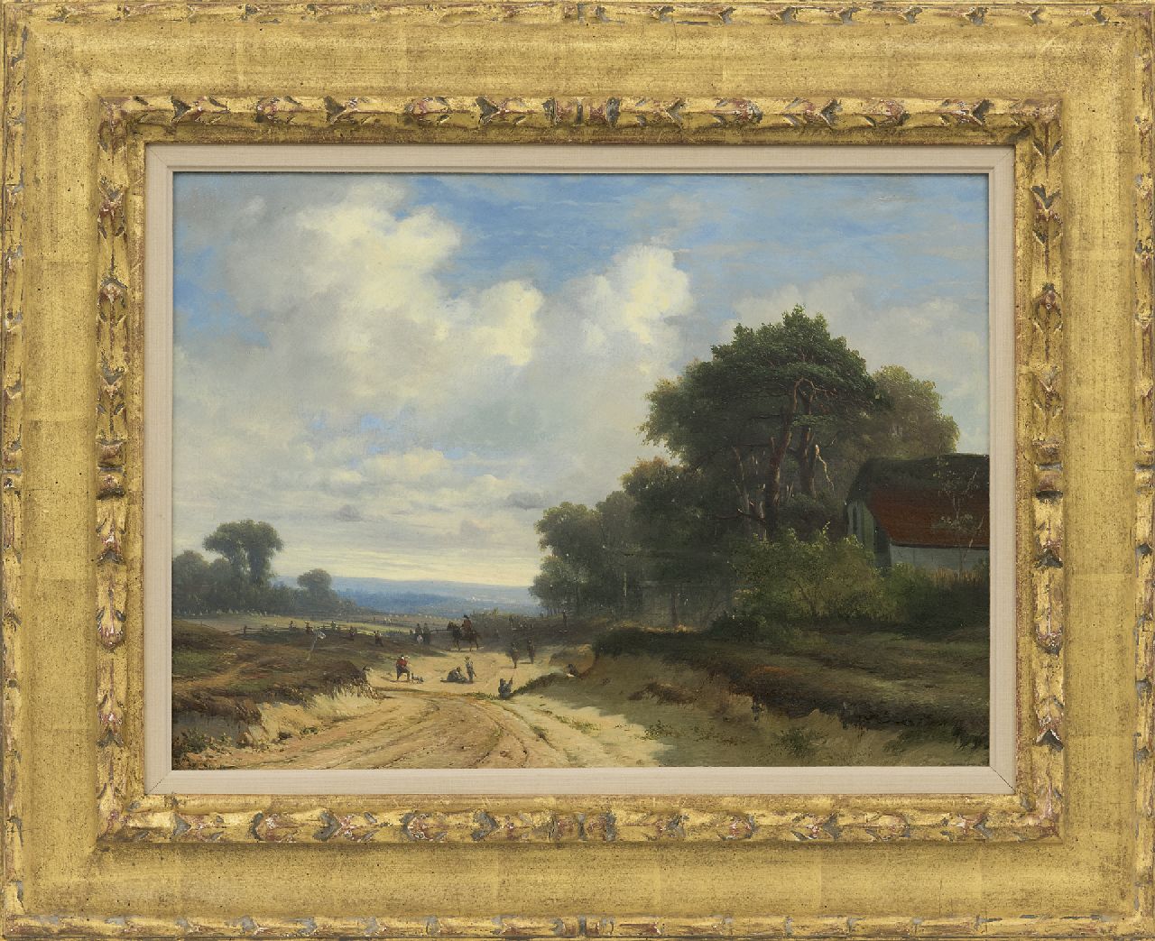 Coenraad Alexander Weerts kunstwerk • schilderij • te koop Infanteristen op een zandpad bij een boerenhoeve