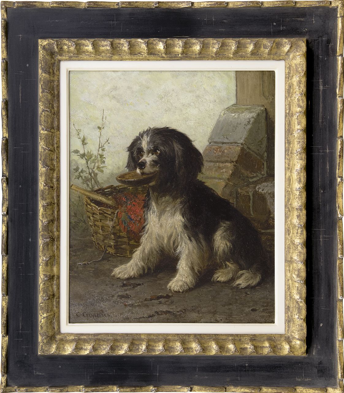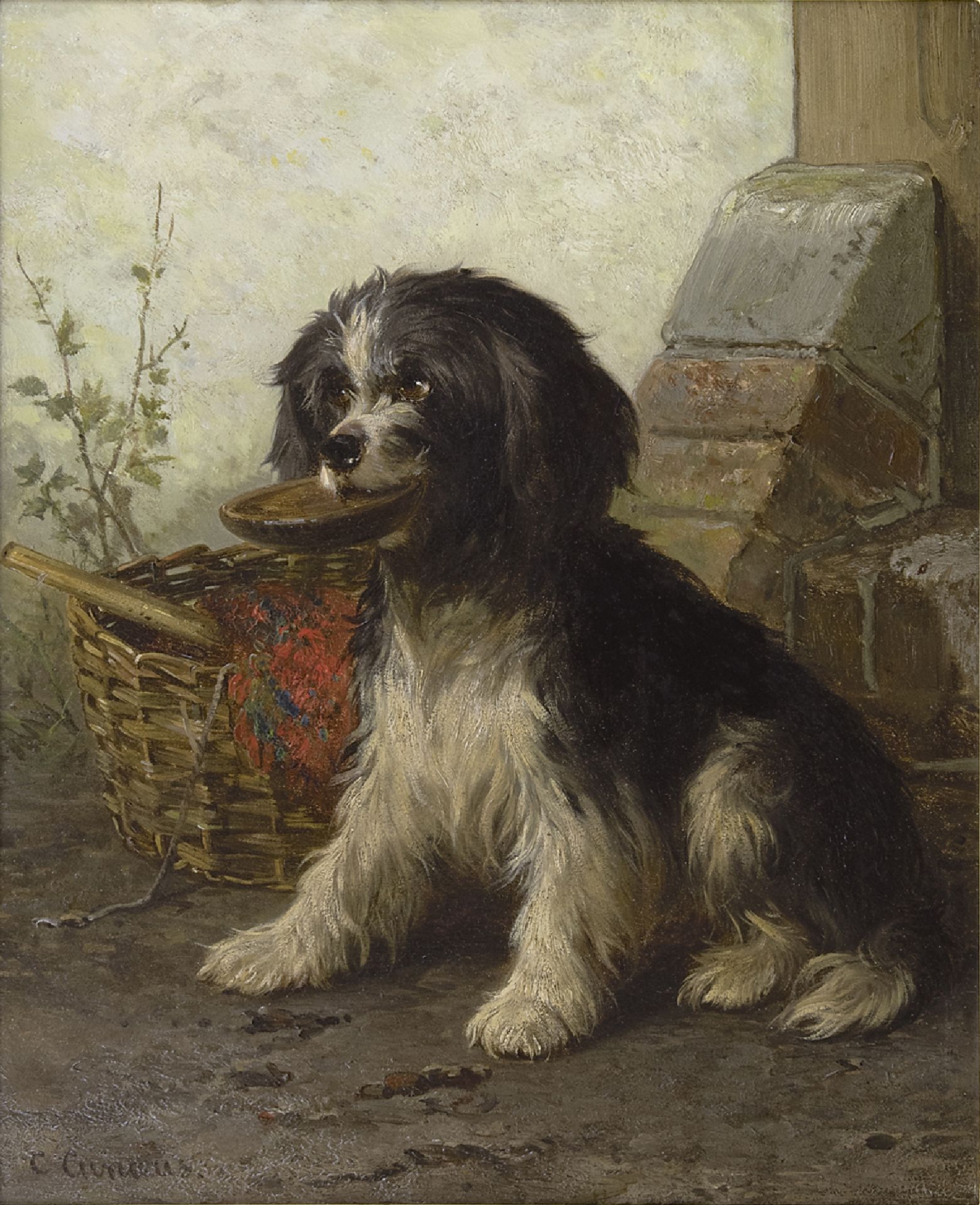Conradijn Cunaeus was een dierenschilder, vooral van honden, en leerling van de portretschilder Nicolaas Pieneman. Schilderijen van honden en katten ontstonden als apart genre in de tweede helft van de 19e eeuw. Voordien speelden deze dieren een ondergeschikte rol als stoffering van genrestukken, landschappen en portretten. In het nieuwe genre kregen zij allerlei menselijke emoties, deugden en ondeugden toegemeten. Belangrijke vertegenwoordigers van het dierstuk waren, naast Cunaeus, o.a. Otto Eerelman en Henriëtte Ronner-Knip.