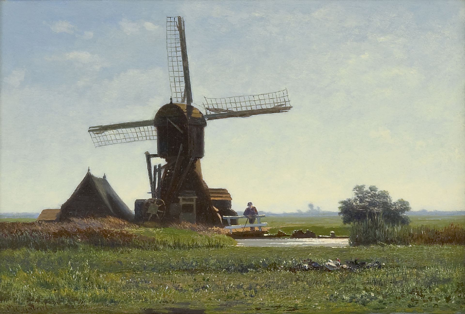 Constan Gabriel kunstwerk • schilderij • voorheen te koop De Winkelse Molen bij Abcoude, bij tegenlicht