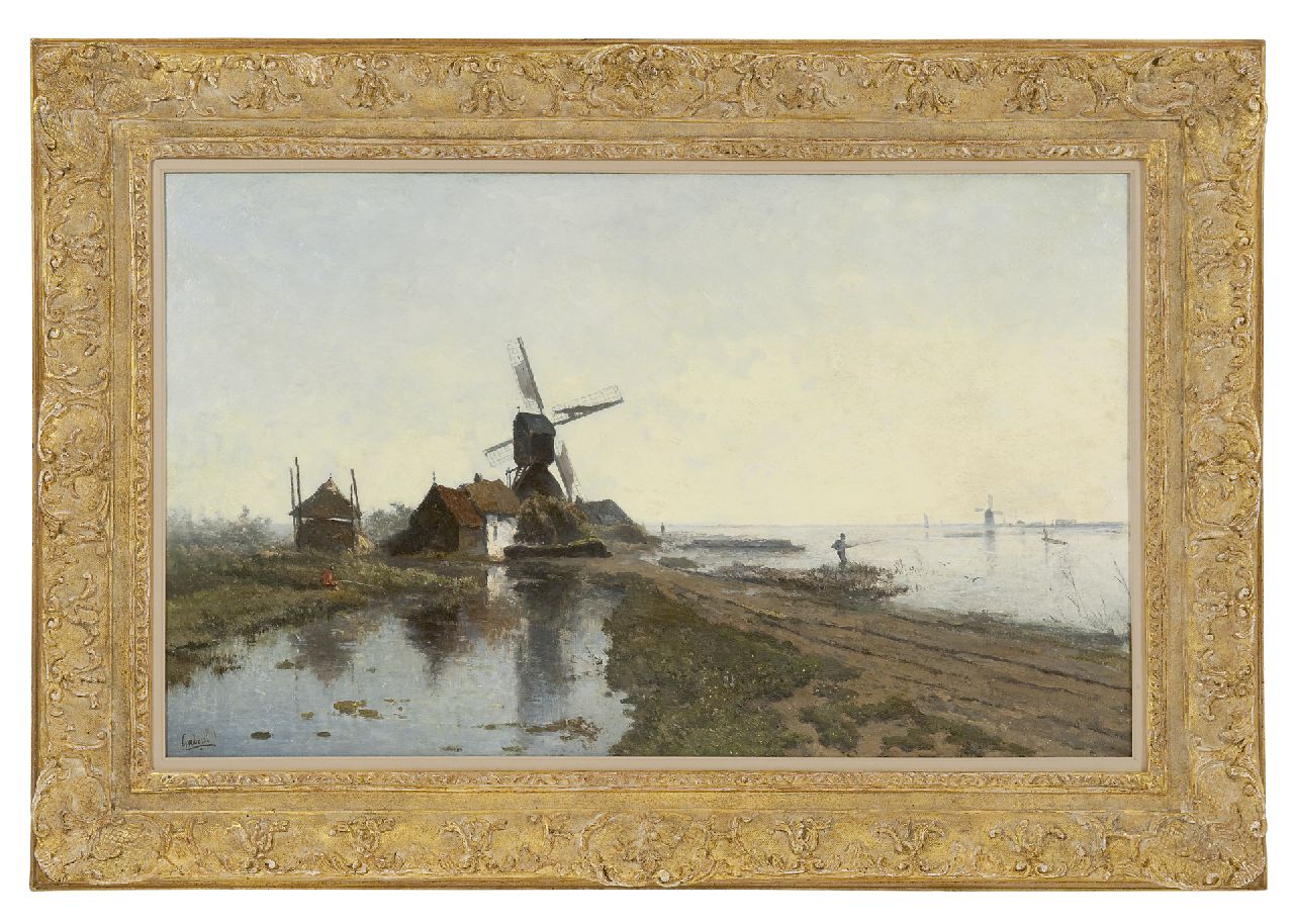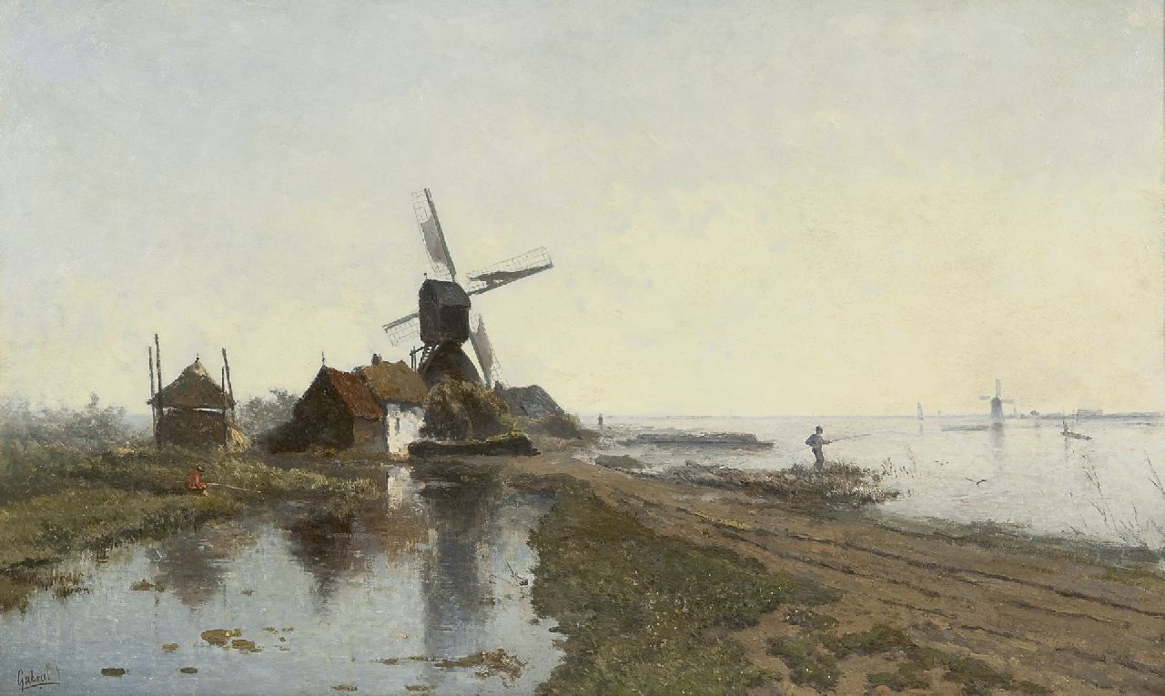 Constan Gabriel kunstwerk • schilderij • voorheen te koop Het Moleneind bij Kortenhoef, met molen De Lelie