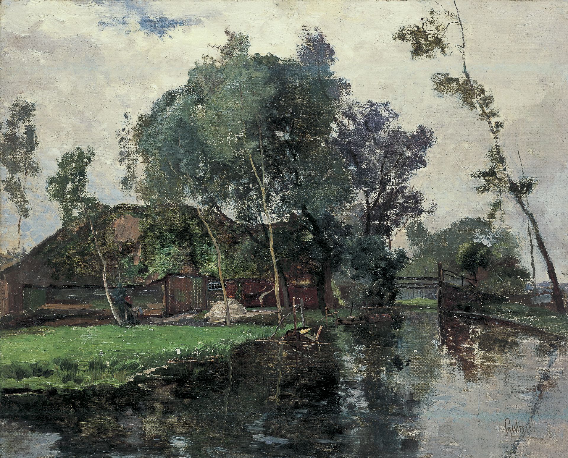 Constan Gabriel kunstwerk • schilderij • voorheen te koop Hoeve aan het water, Giethoorn
