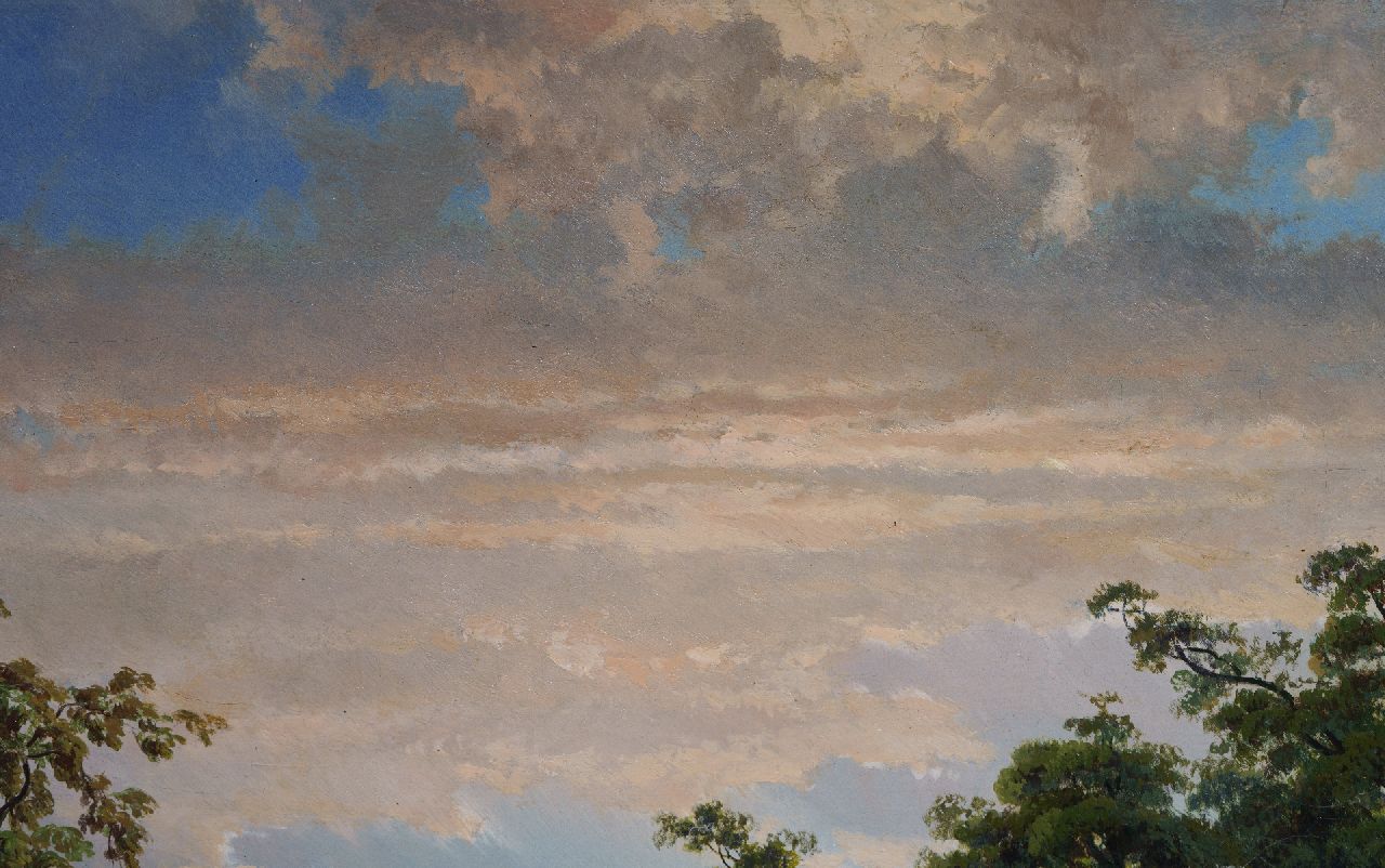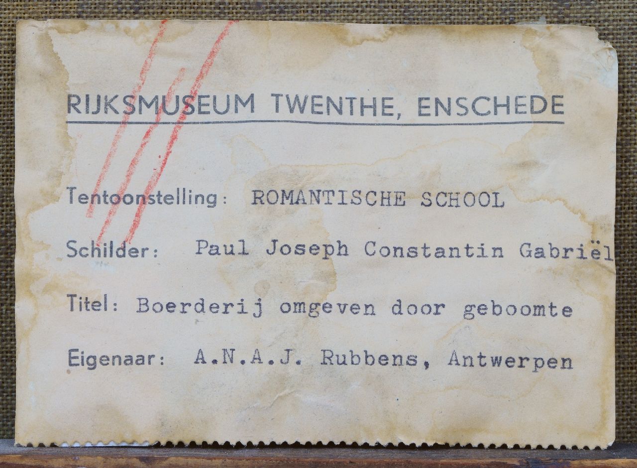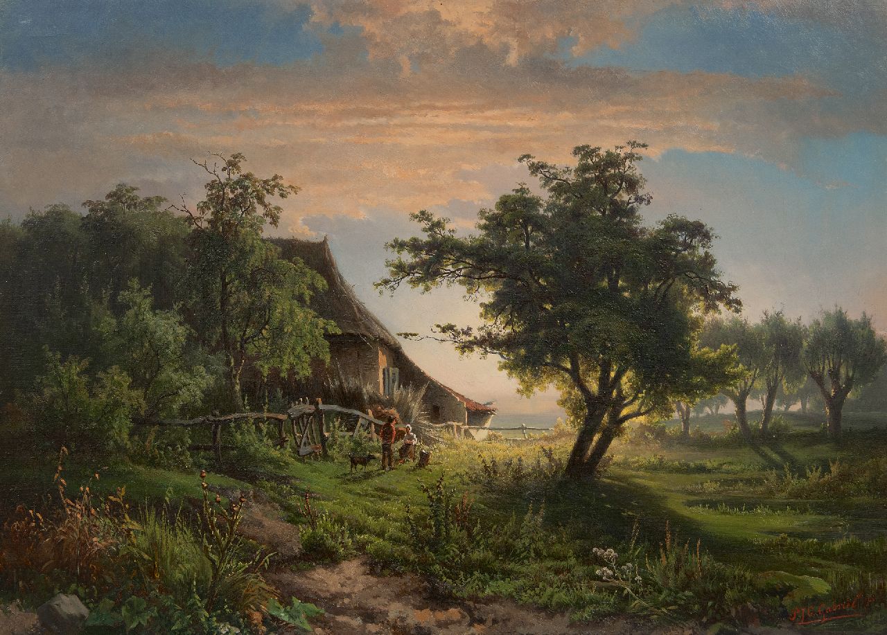 Constan Gabriel kunstwerk • schilderij • voorheen te koop Landschap met boerderij bij zonsondergang