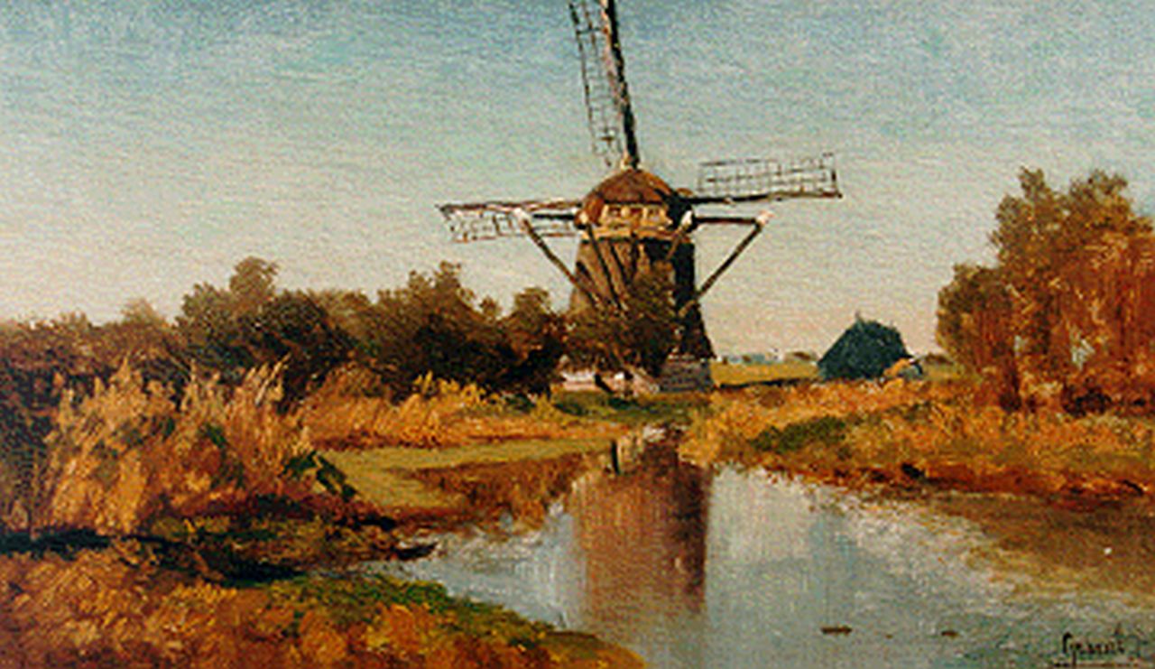 Constan Gabriel kunstwerk • schilderij • voorheen te koop Molen aan het water bij Abcoude