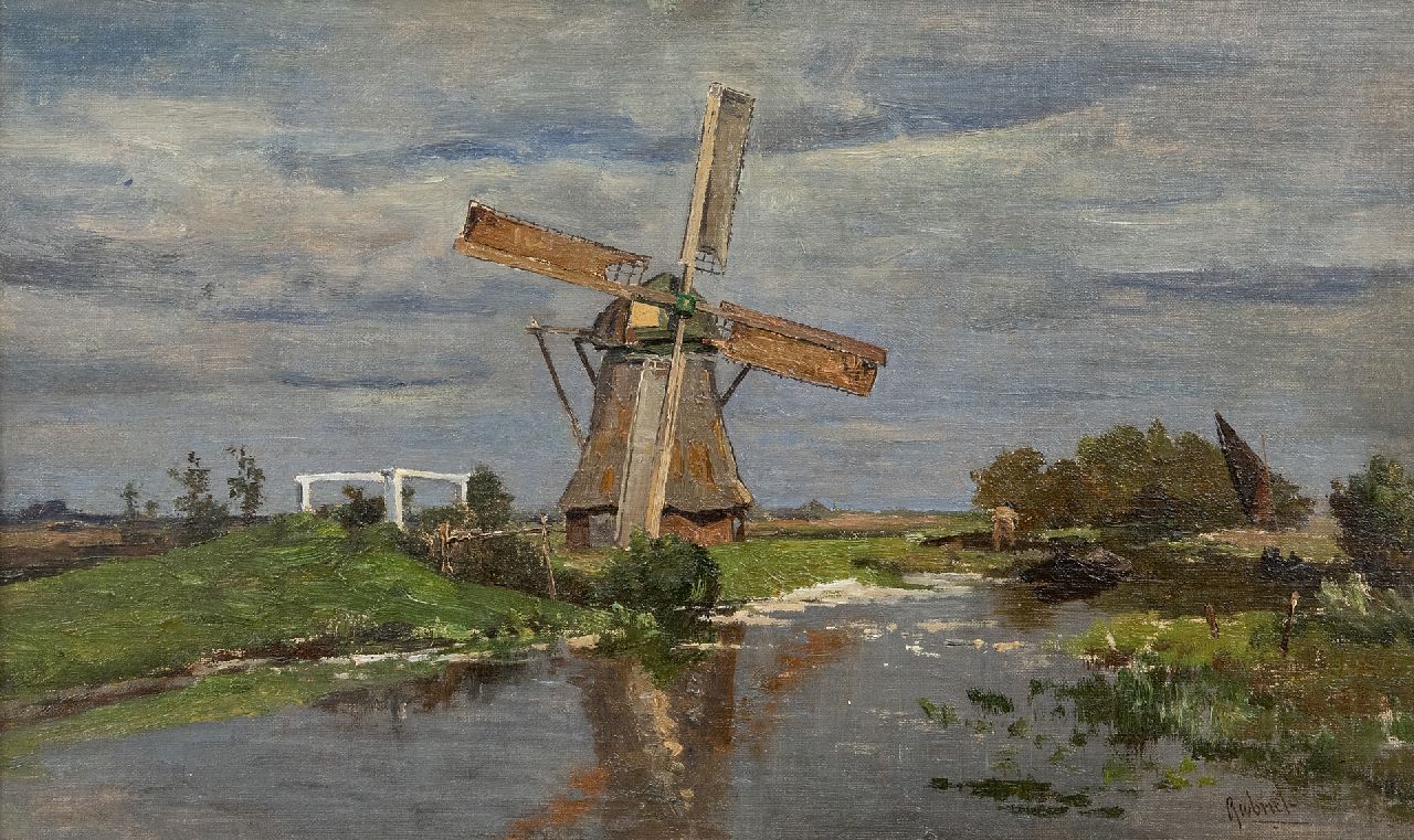 Constan Gabriel | Poldermolen bij Giethoorn, olieverf op doek, 90,8 x 151,0 cm, gesigneerd r.o. en te dateren ca. 1875