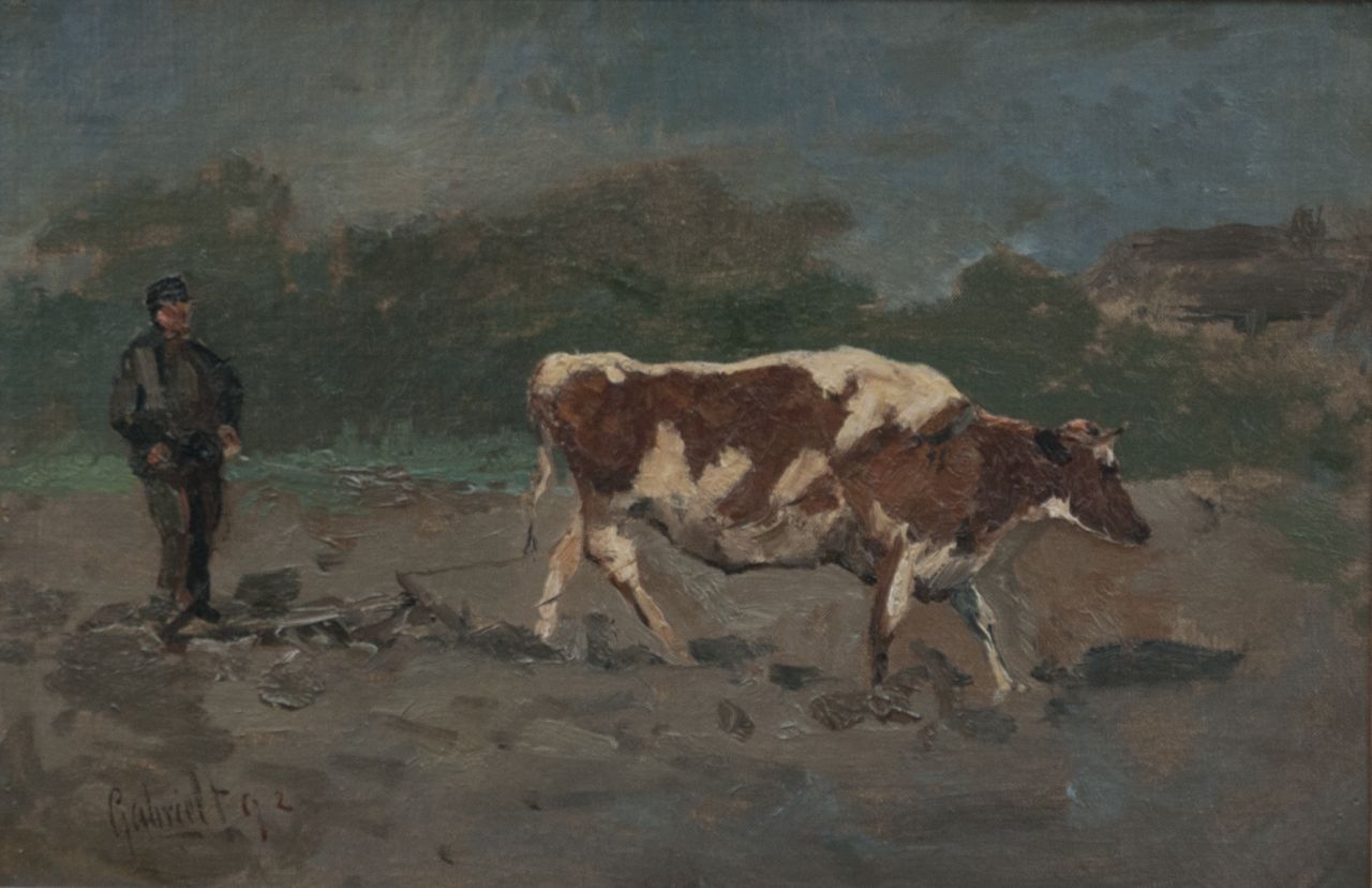 Constan Gabriel kunstwerk • schilderij • voorheen te koop Ploegende boer