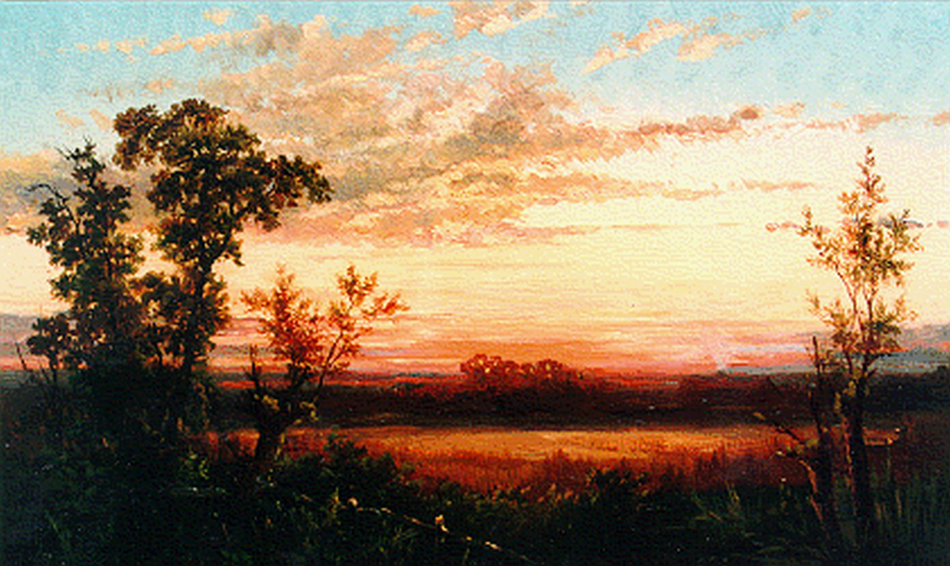 Constan Gabriel kunstwerk • schilderij • voorheen te koop Romantisch landschap bij avond