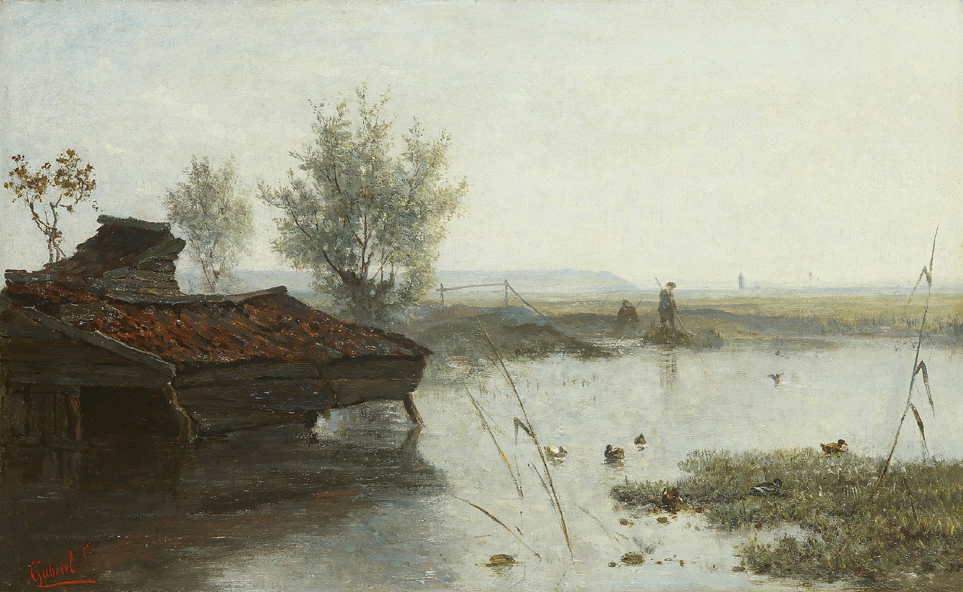 Constan Gabriel wordt wel gekarakteriseerd als de portrettist bij uitstek van het Hollandse polderlandschap. Het schilderen in de natuur leerde hij in Oosterbeek, waar hij enige tijd verbleef samen met J.W. Bilders en J.H.L. de Haas. Tussen 1860 en 1884 woonde Gabriel in Brussel. Van daaruit keerde hij regelmatig terug om de Hollandse plassen en polders te schilderen. Tot in de jaren tachtig was dat vooral het gebied rond Kortenhoef, Abcoude en Vreeland. Nadat hij in 1884 naar Scheveningen verhuisde werkte hij veel in de omgeving van Den Haag. Uiteindelijk ontwikkelde Gabriel zich tot een van de toonaangevende schilders van de Haagse School.