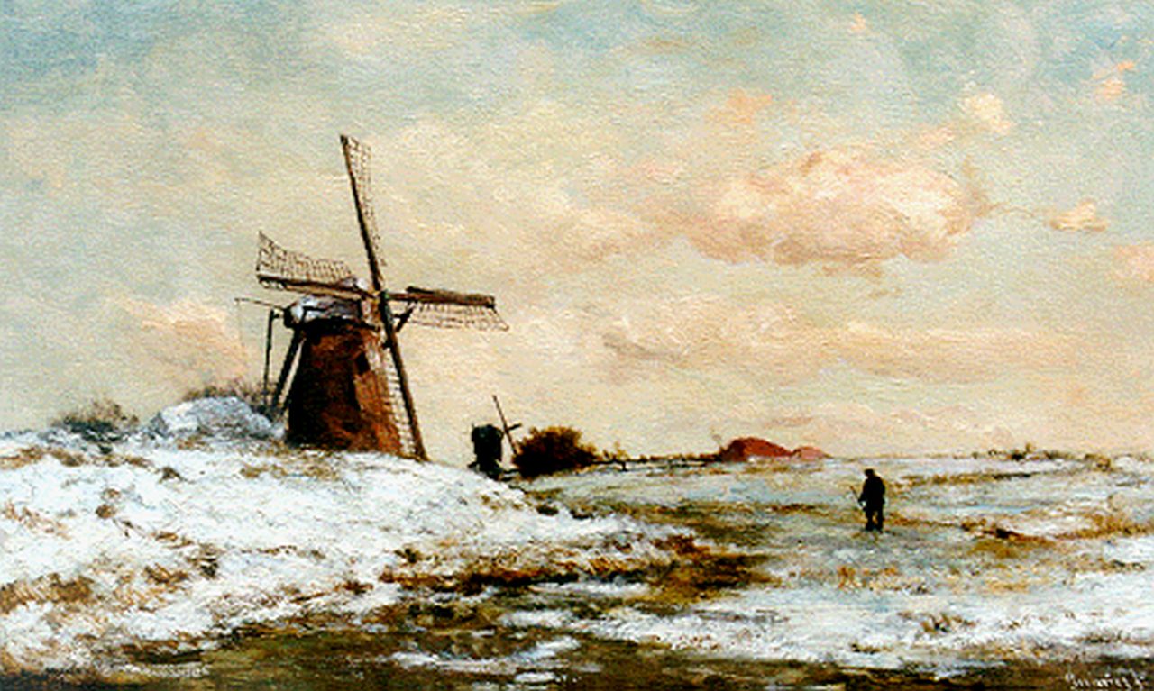 Constan Gabriel kunstwerk • schilderij • voorheen te koop Winterlandschap met wandelaar