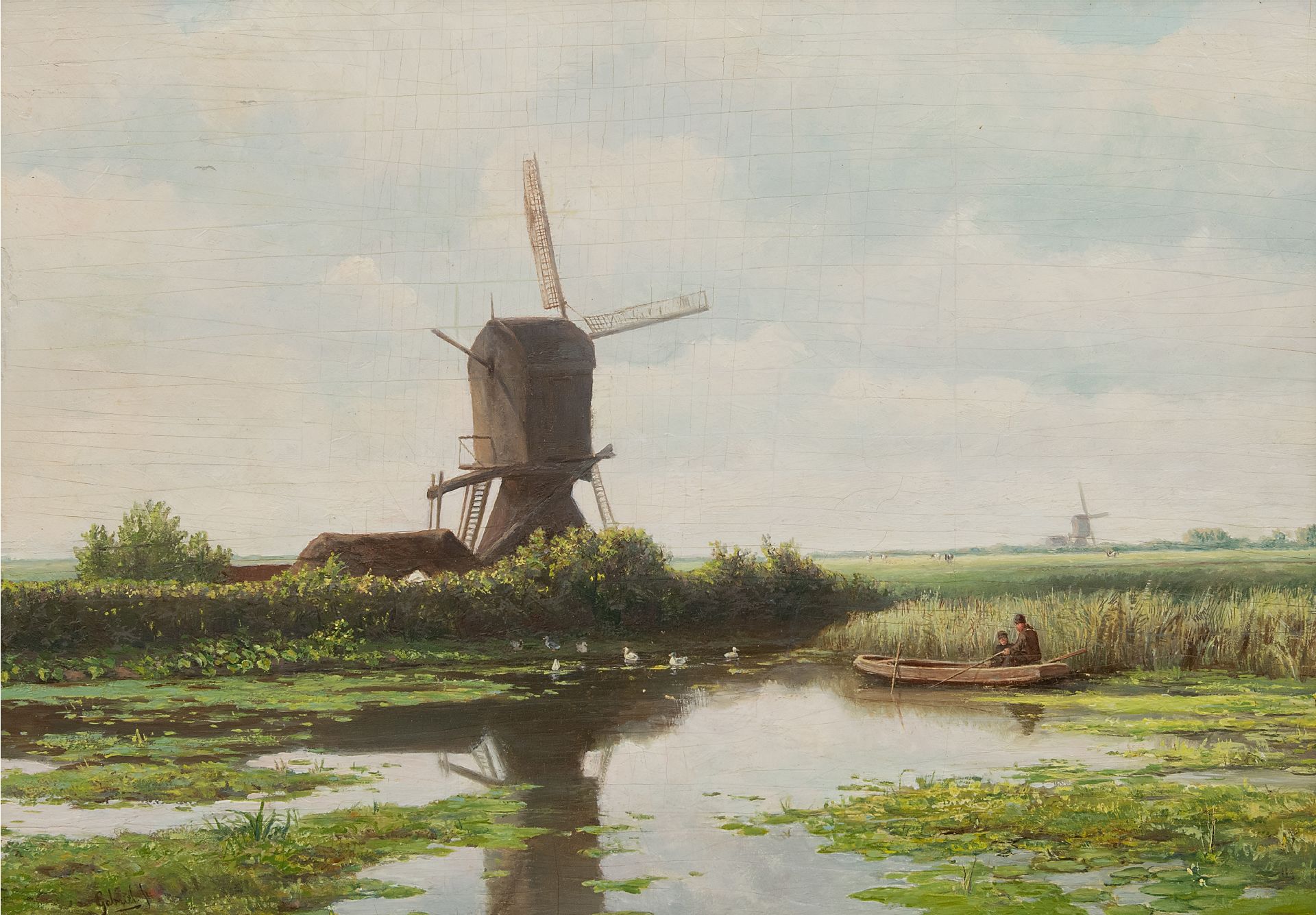 Constan Gabriel kunstwerk • schilderij • te koop Wipmolen in een polderlandschap