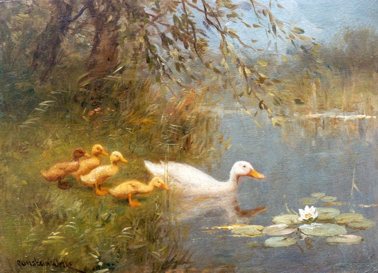 Constant Artz | Eendjes langs de waterkant, olieverf op paneel, 24,2 x 18,2 cm, gesigneerd l.o. en zonder lijst