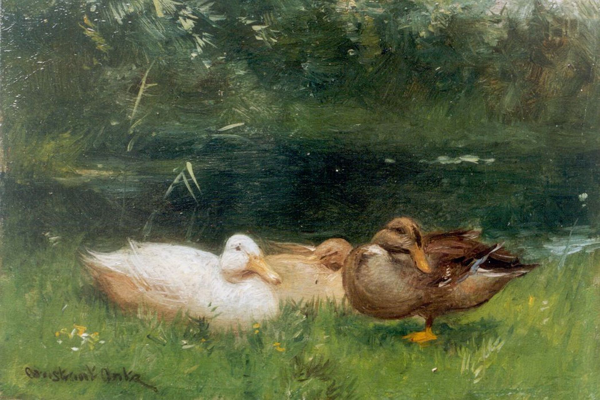 Constant Artz kunstwerk • schilderij • voorheen te koop Drie eenden op de oever