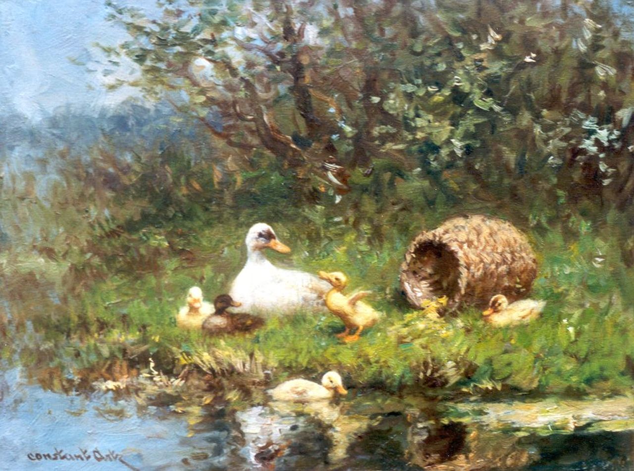 Constant Artz kunstwerk • schilderij • voorheen te koop Eend met kuikens bij broedkorf