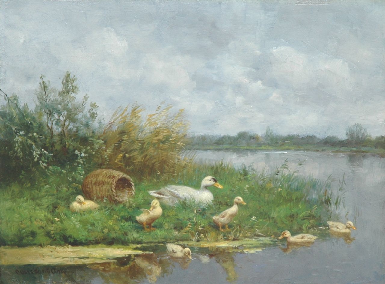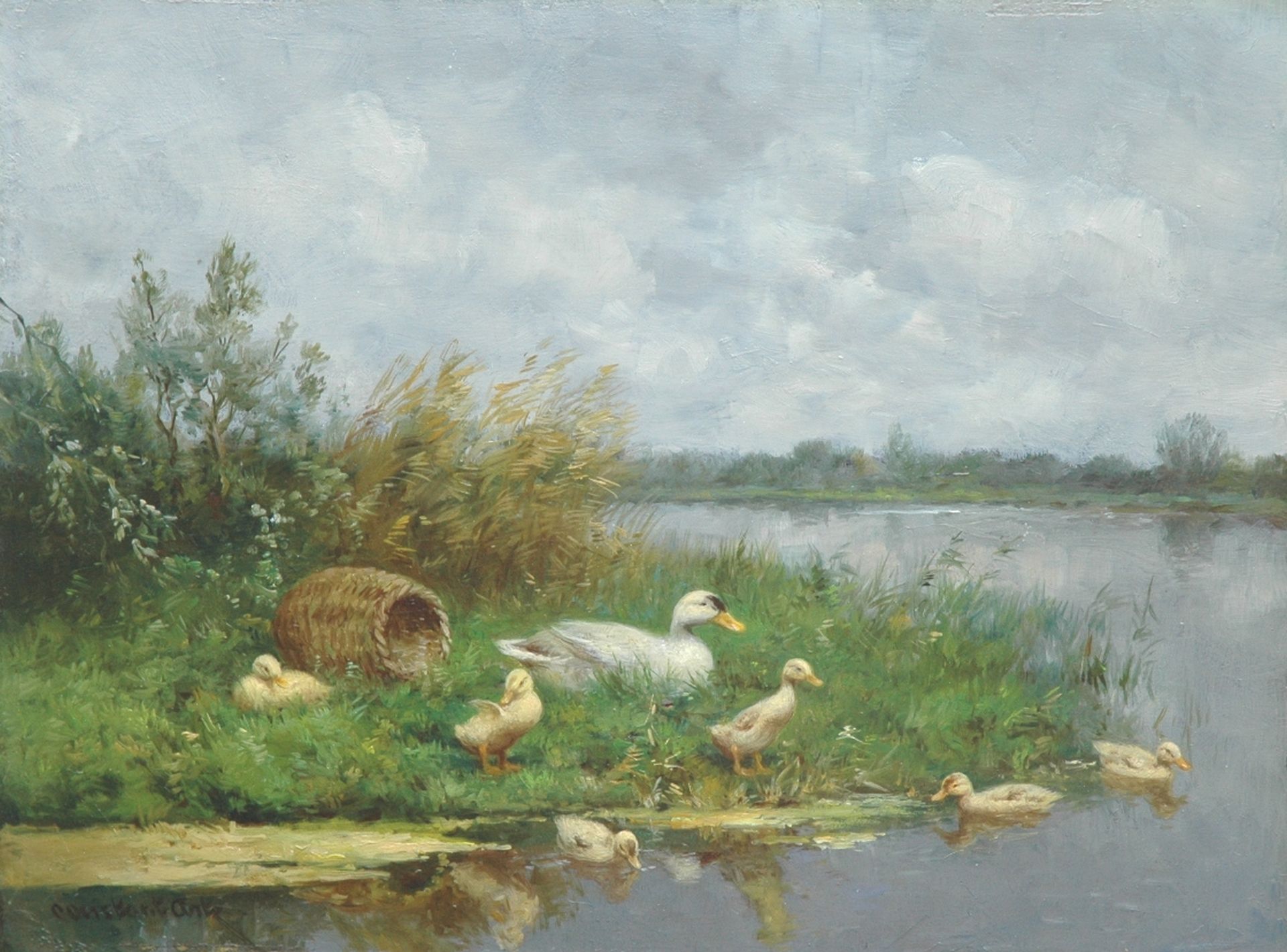 Constant Artz kunstwerk • schilderij • voorheen te koop Eend met kuikens bij een waterplas