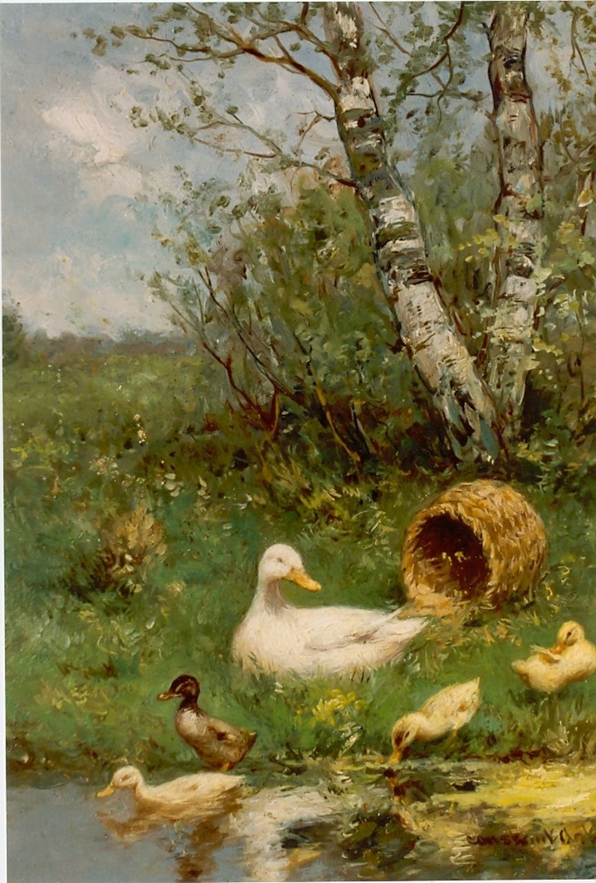 Constant Artz | Eendjes langs de waterkant, olieverf op paneel, 24,2 x 18,2 cm, gesigneerd l.o. en zonder lijst