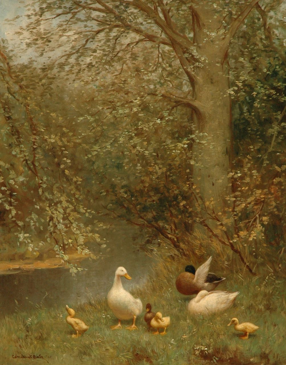 Constant Artz kunstwerk • schilderij • voorheen te koop Eenden onder een beuk aan de waterkant