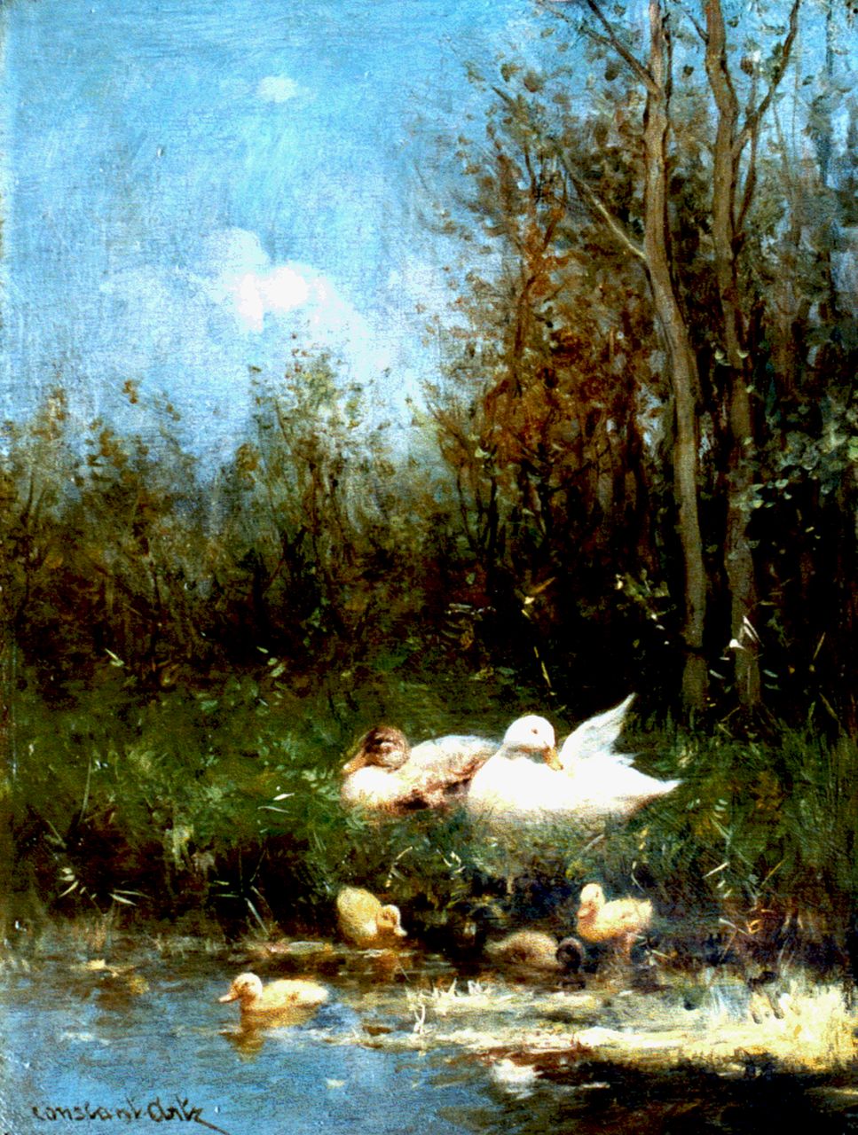 Constant Artz kunstwerk • schilderij • voorheen te koop Eendenfamilie aan de waterkant