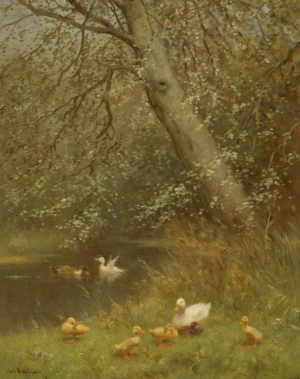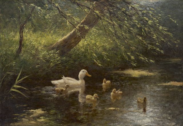 Constant Artz kunstwerk • schilderij • te koop Eendenfamilie bij een vijver