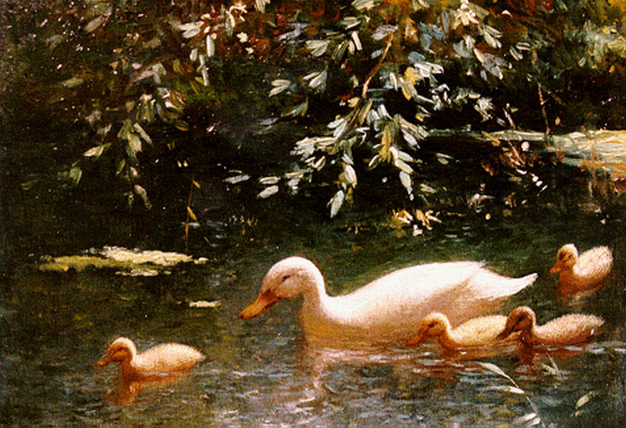 Constant Artz kunstwerk • schilderij • voorheen te koop Eendenfamilie in het water