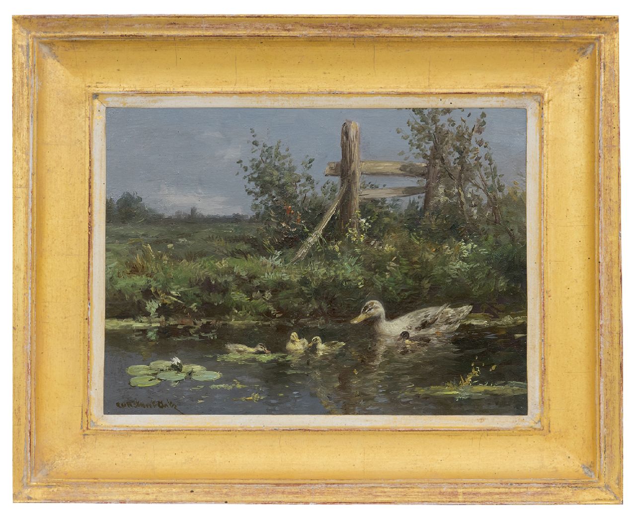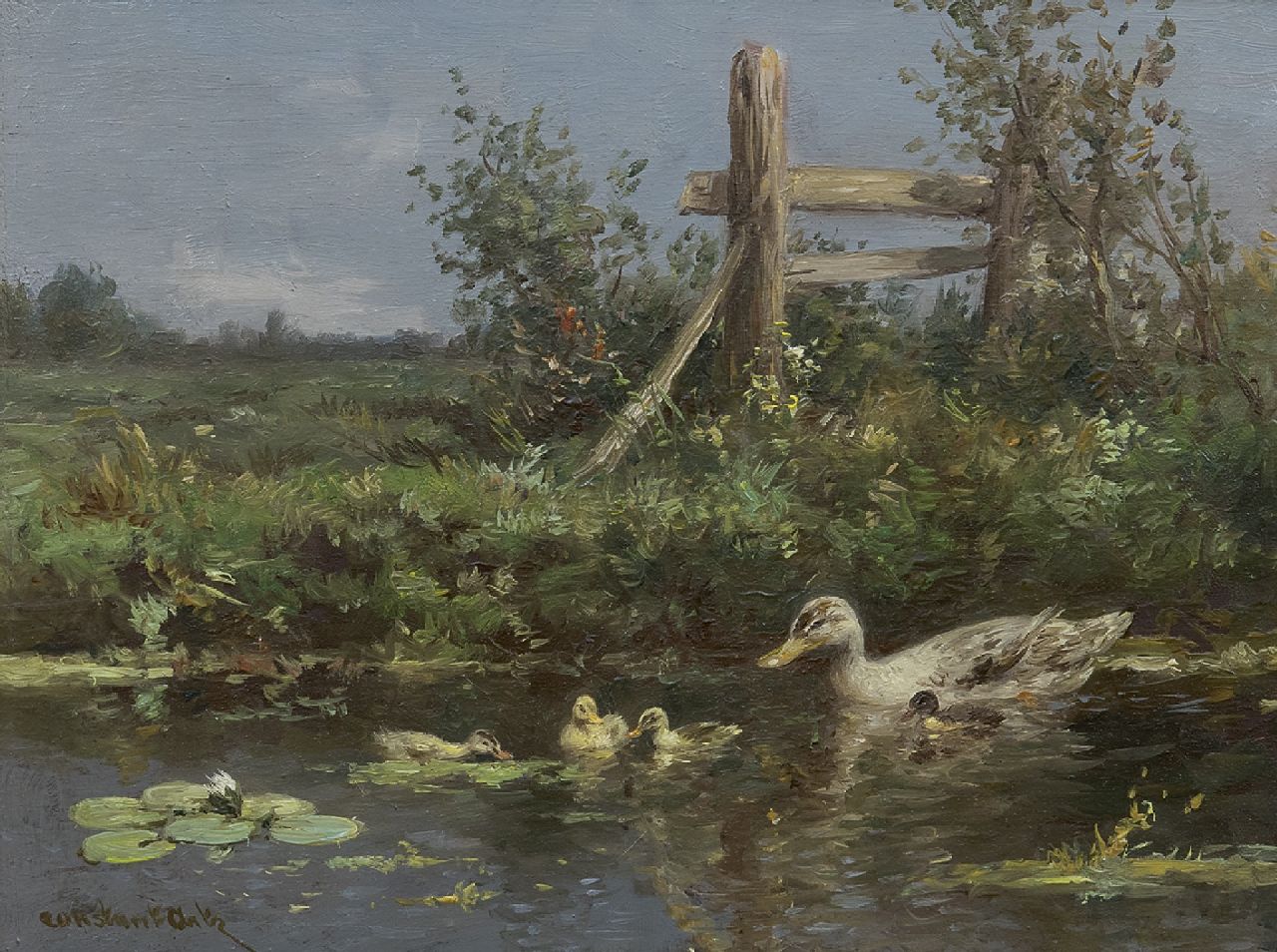 Constant Artz kunstwerk • schilderij • voorheen te koop Eendenfamilie langs de waterkant