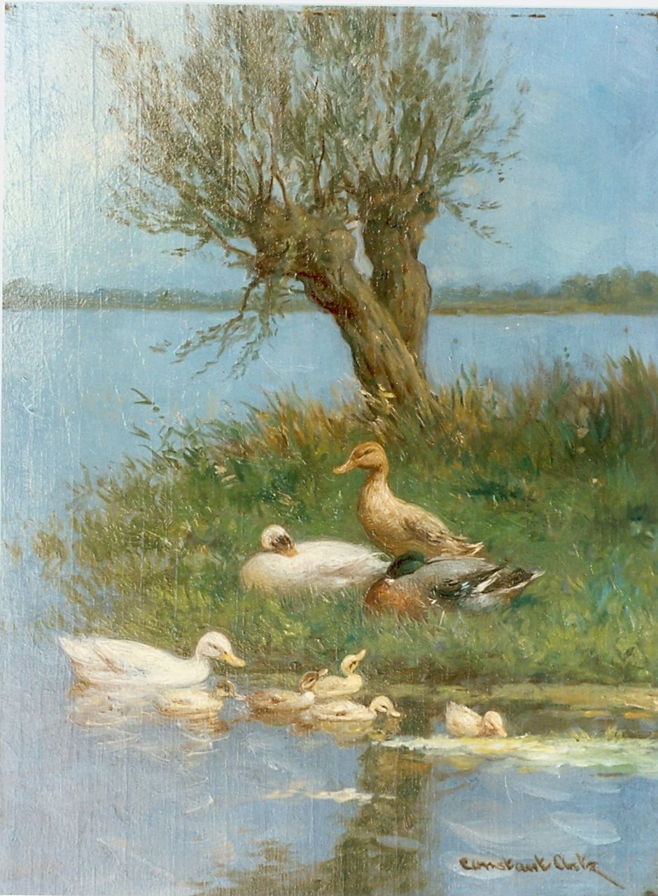 Constant Artz kunstwerk • schilderij • voorheen te koop Eendenkuikens bij de waterkant