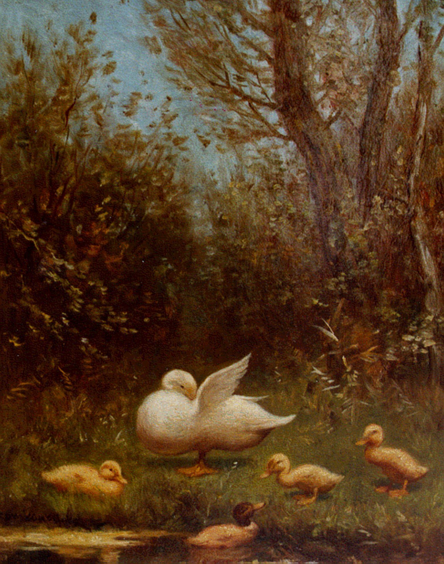 Constant Artz kunstwerk • schilderij • voorheen te koop Eendjes aan de slootoever