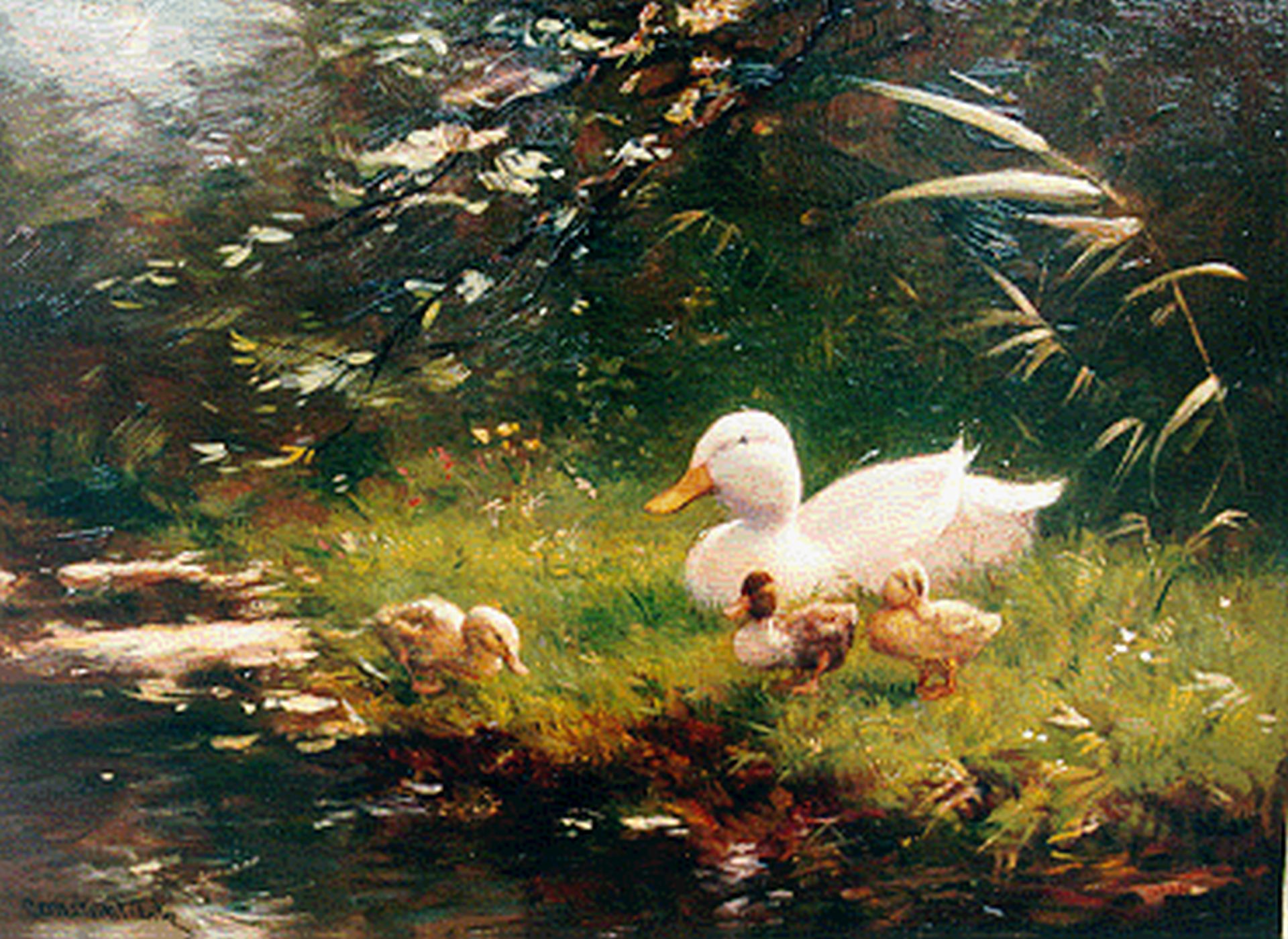 Constant Artz kunstwerk • schilderij • voorheen te koop Eendjes aan de waterkant