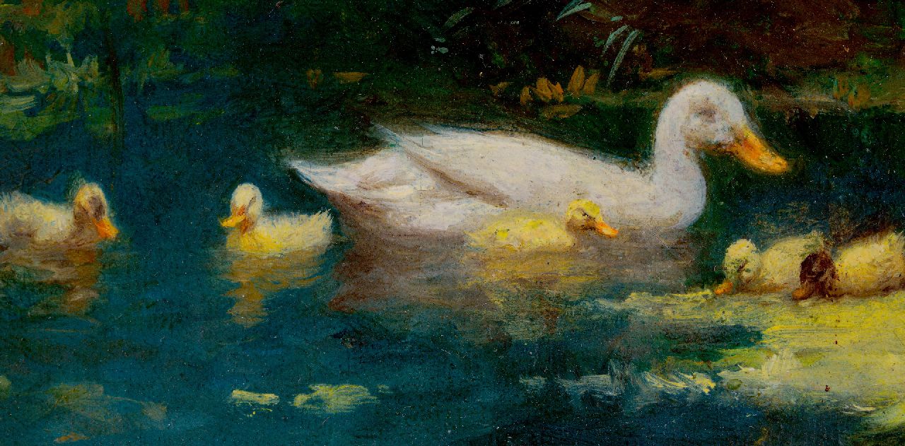 Constant Artz kunstwerk • schilderij • te koop Eendjes langs de waterkant