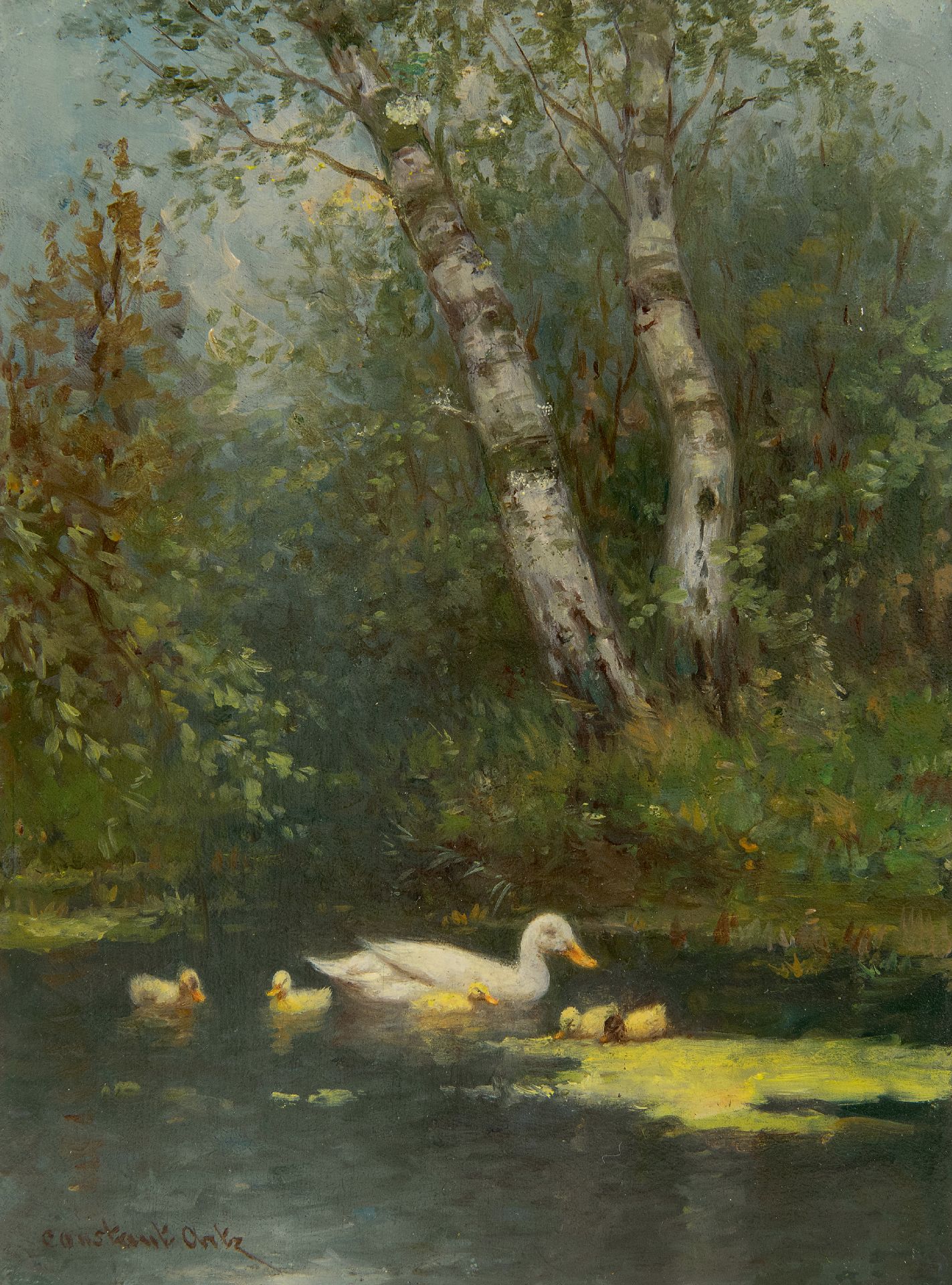 Constant Artz | Eendenfamilie bij een vijver, olieverf op paneel, 50,1 x 40,2 cm, gesigneerd l.o. en zonder lijst
