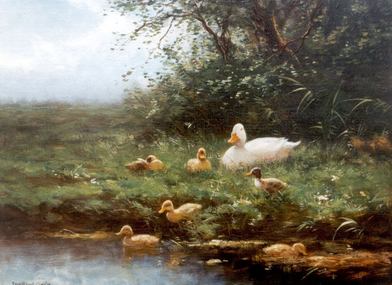 Artz C.D.L.  | 'Constant' David Ludovic Artz, Moedereend en kuikens aan de slootkant, olieverf op paneel 24,2 x 32,5 cm, gesigneerd linksonder