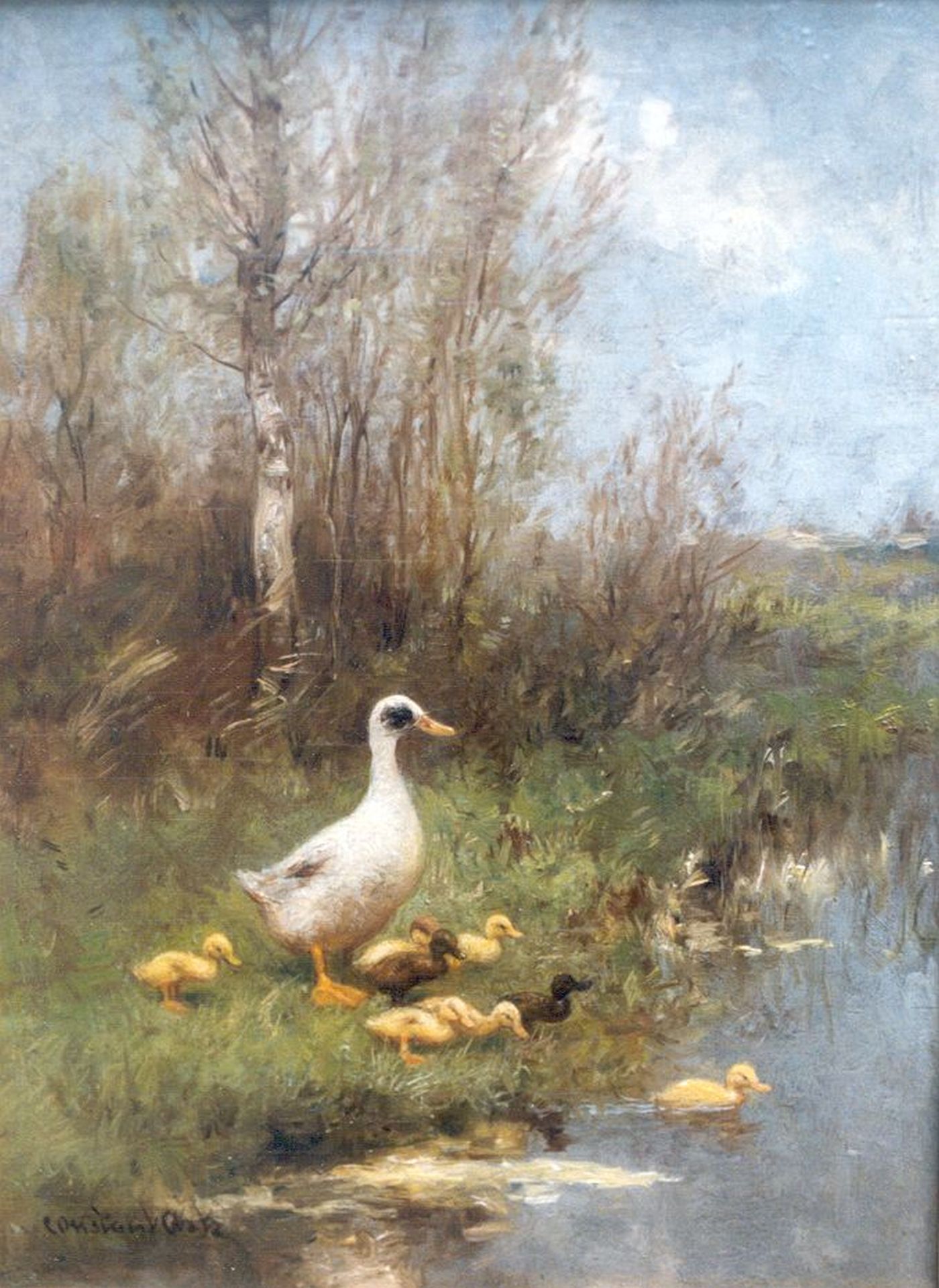 Constant Artz kunstwerk • schilderij • voorheen te koop Moedereend met haar kroost
