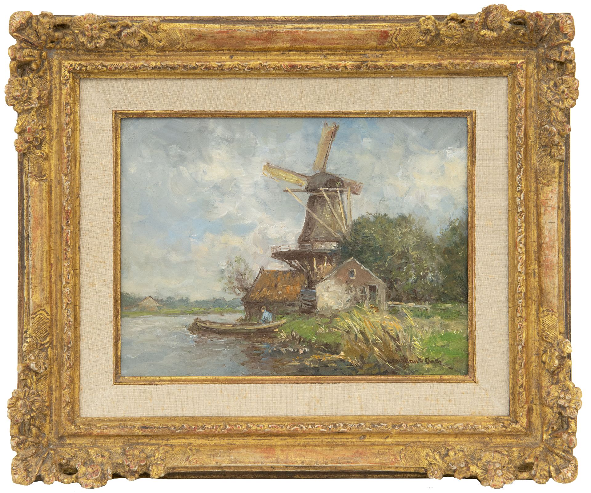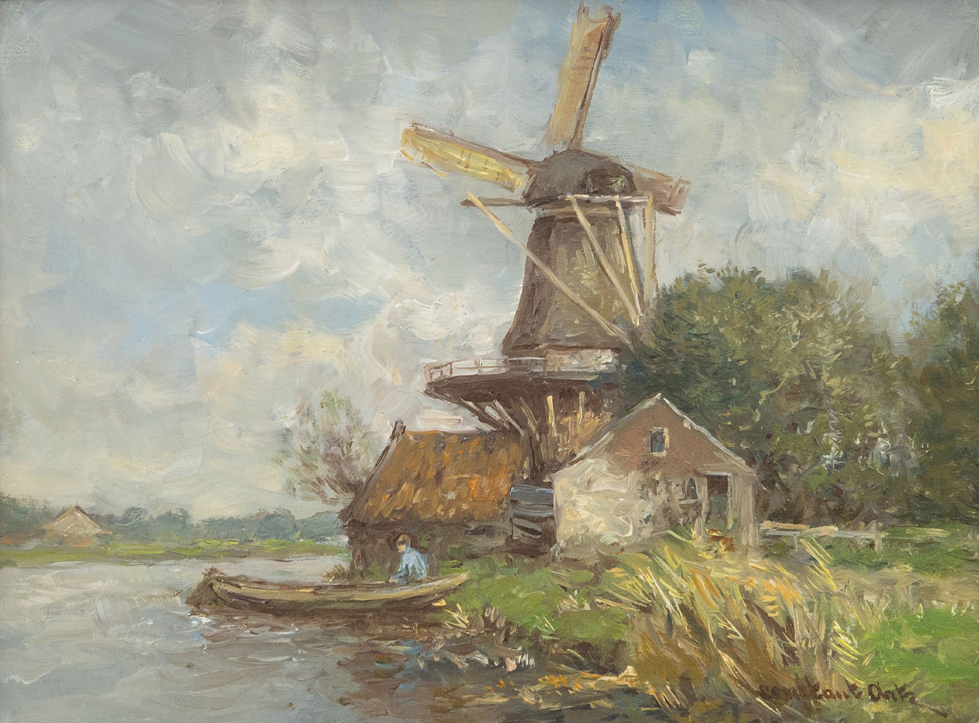 Constant Artz kunstwerk • schilderij • voorheen te koop Visser in een schuit bij een molen