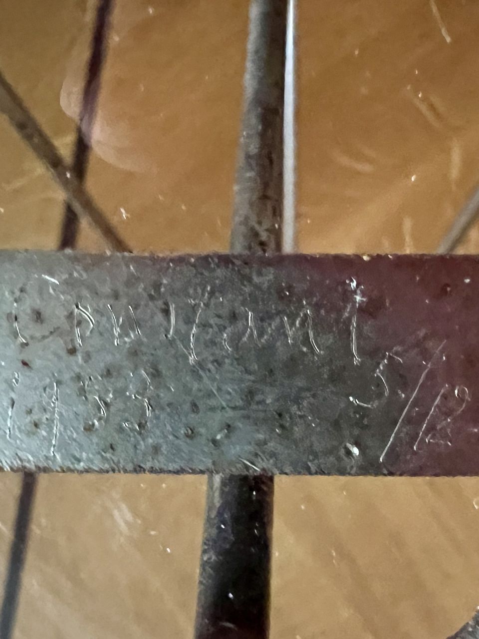 metaal en glas 46,4 x 65,0 cm, gesigneerd op onderstel en gedateerd 1953