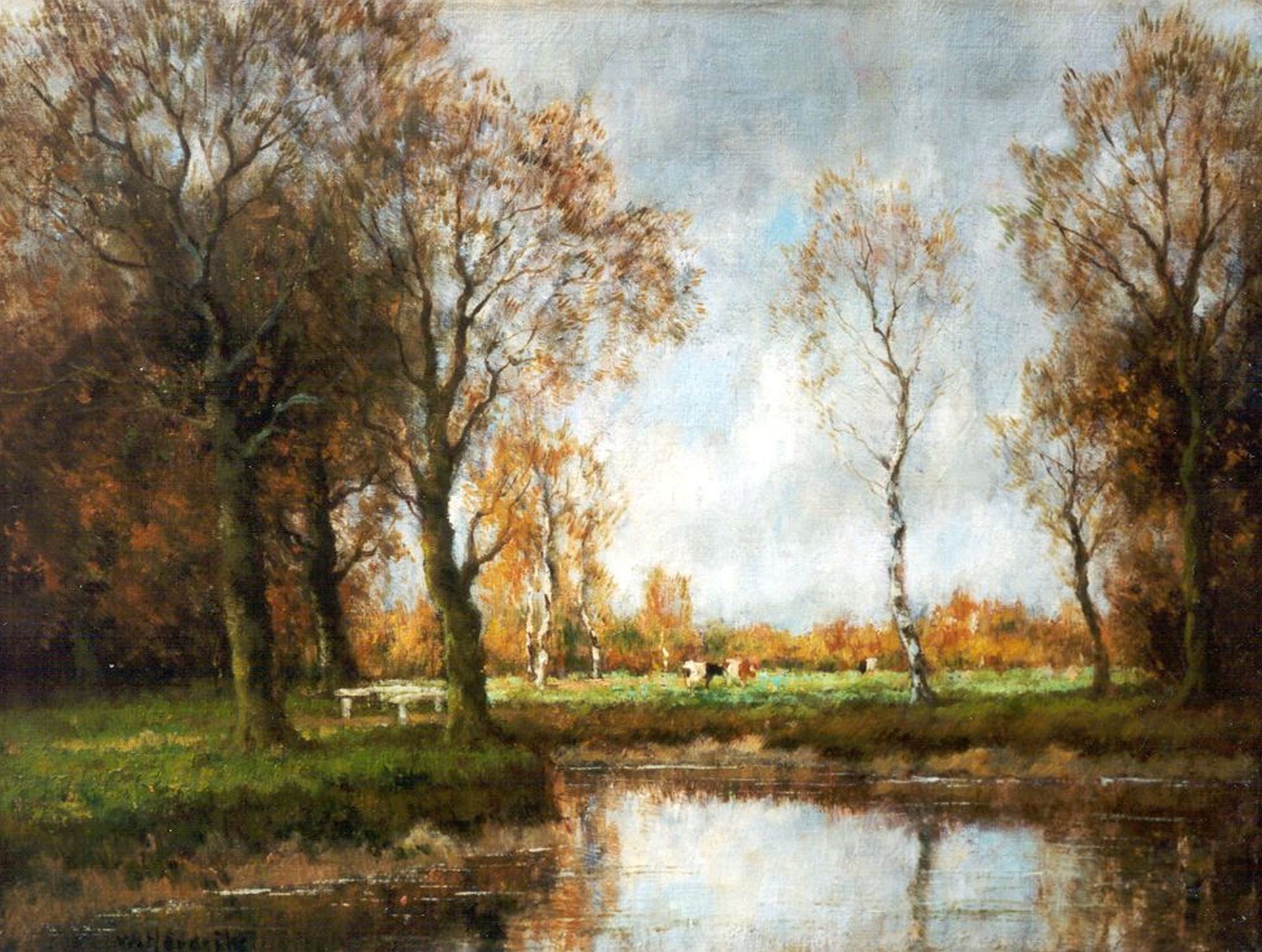 Cor Bouter kunstwerk • schilderij • voorheen te koop Herfstlandschap met grazende koeien