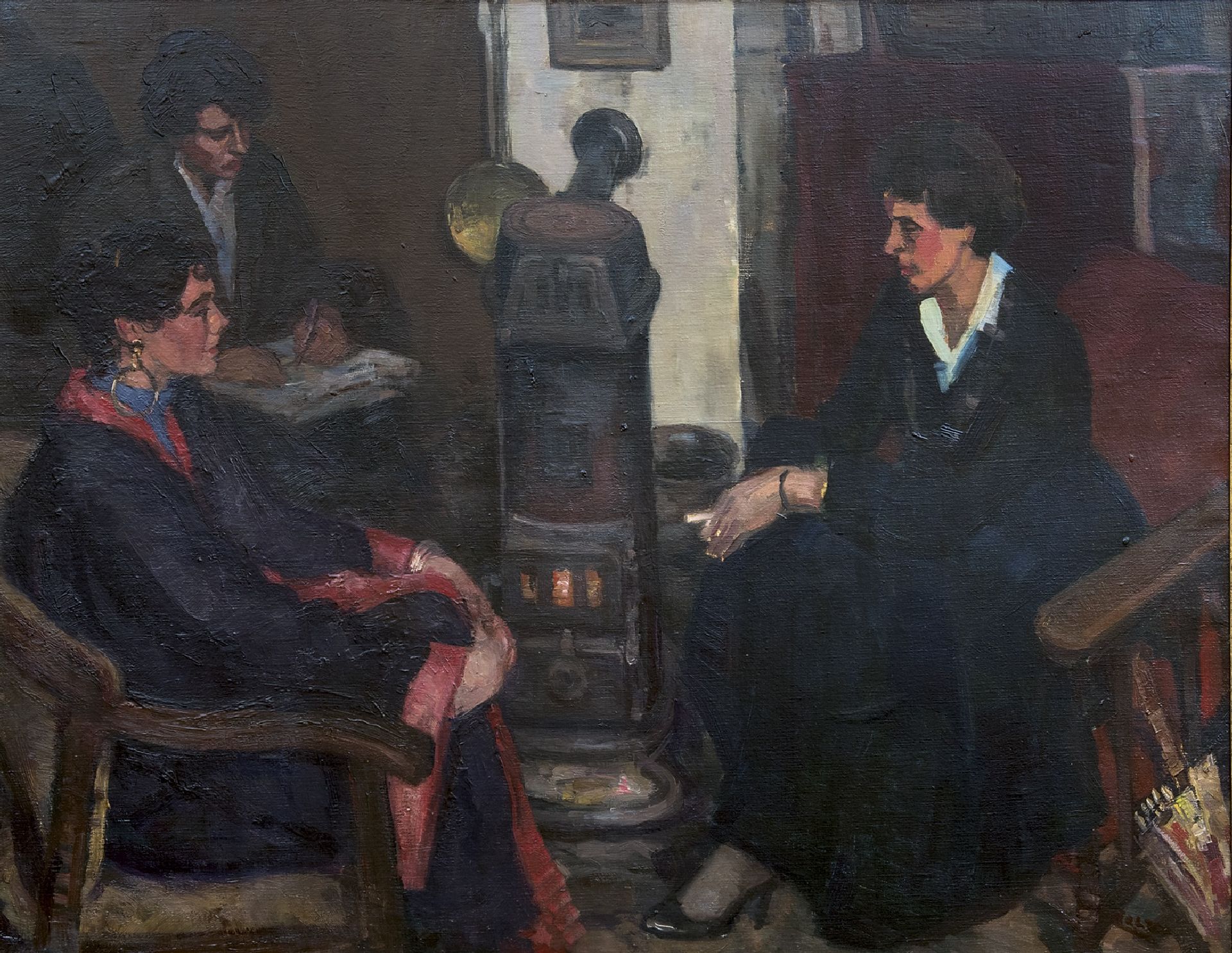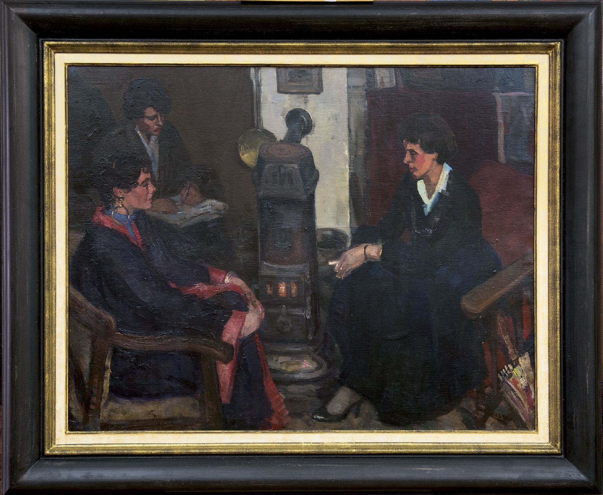 Cor Noltee kunstwerk • schilderij • te koop Drie vrouwen in het atelier van de schilder