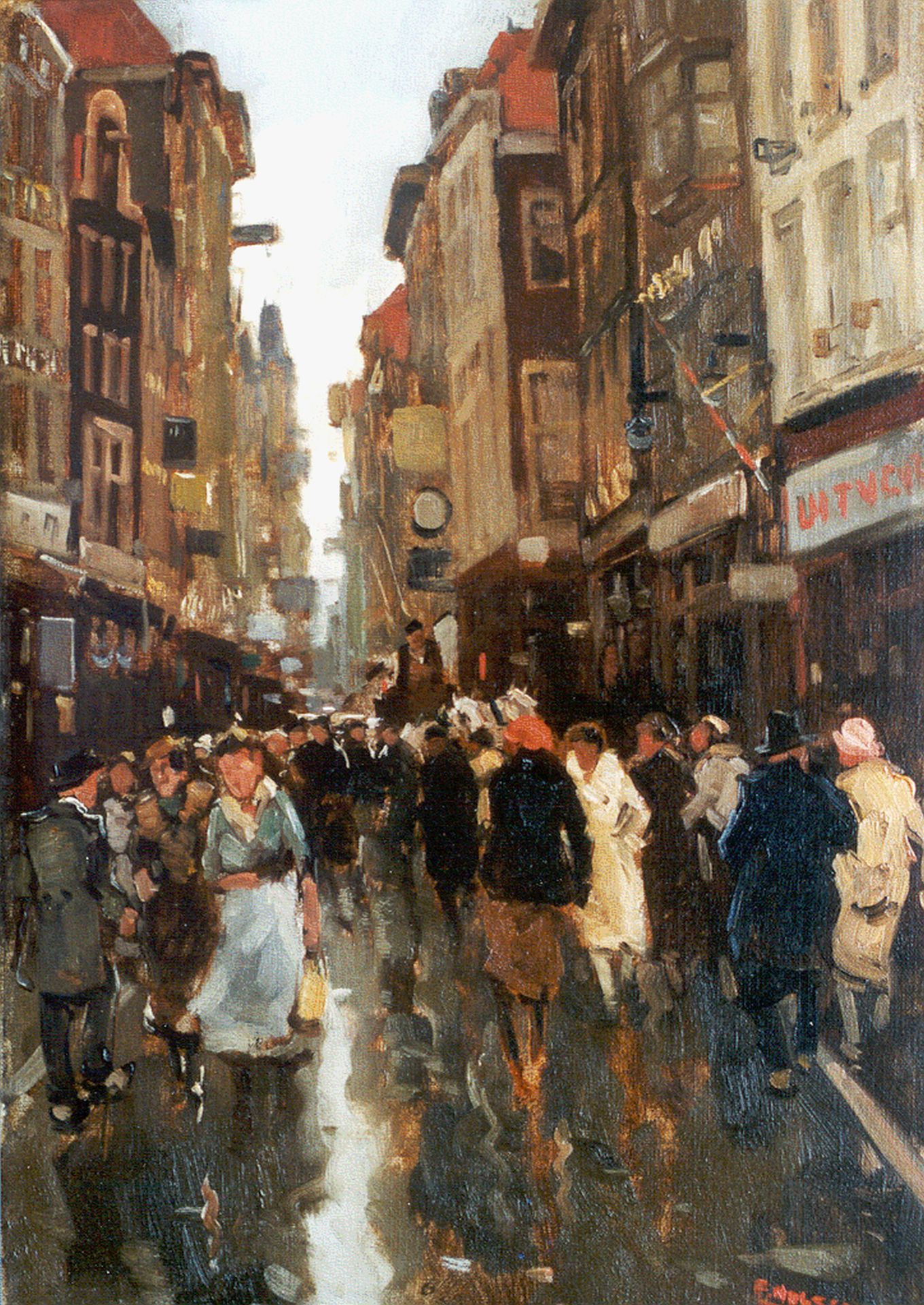 Cor Noltee kunstwerk • schilderij • voorheen te koop Drukbevolkte winkelstraat/Spuistraat, Den Haag