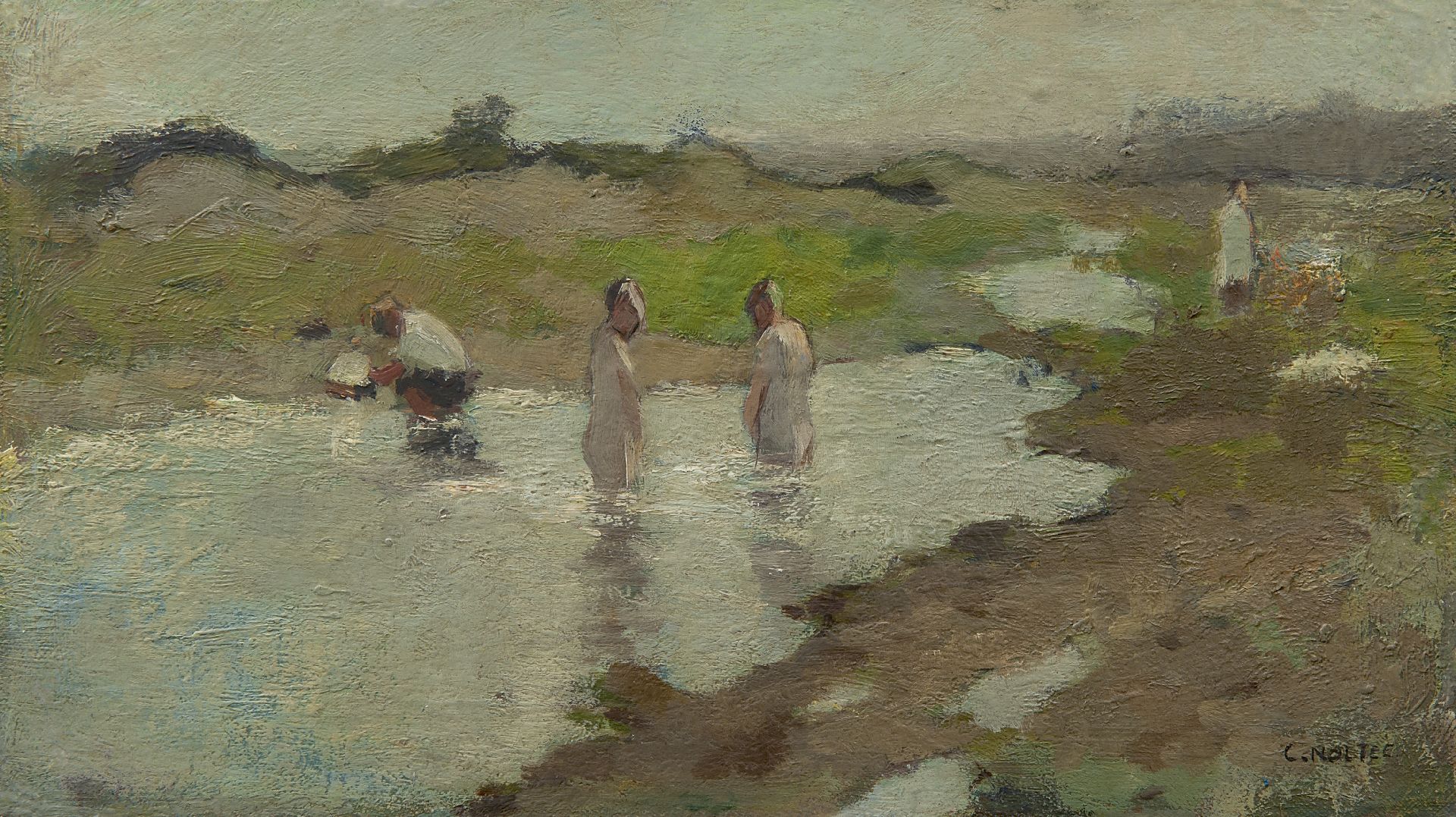 Cor Noltee | Drie vrouwen in het atelier van de schilder, olieverf op doek, 70,7 x 90,4 cm, gesigneerd r.o.