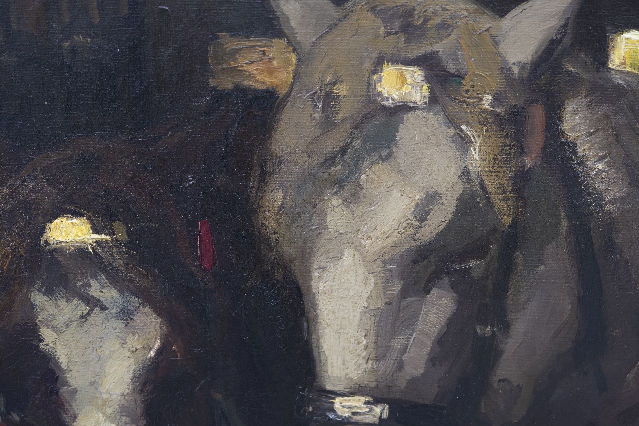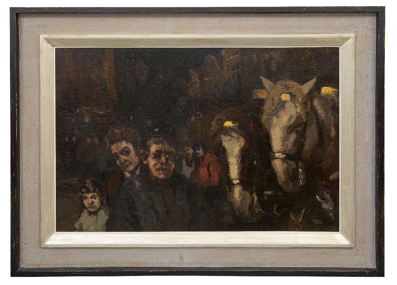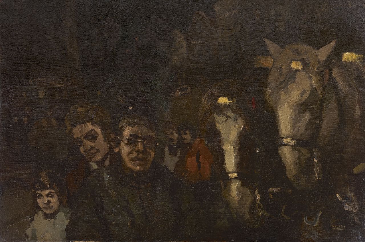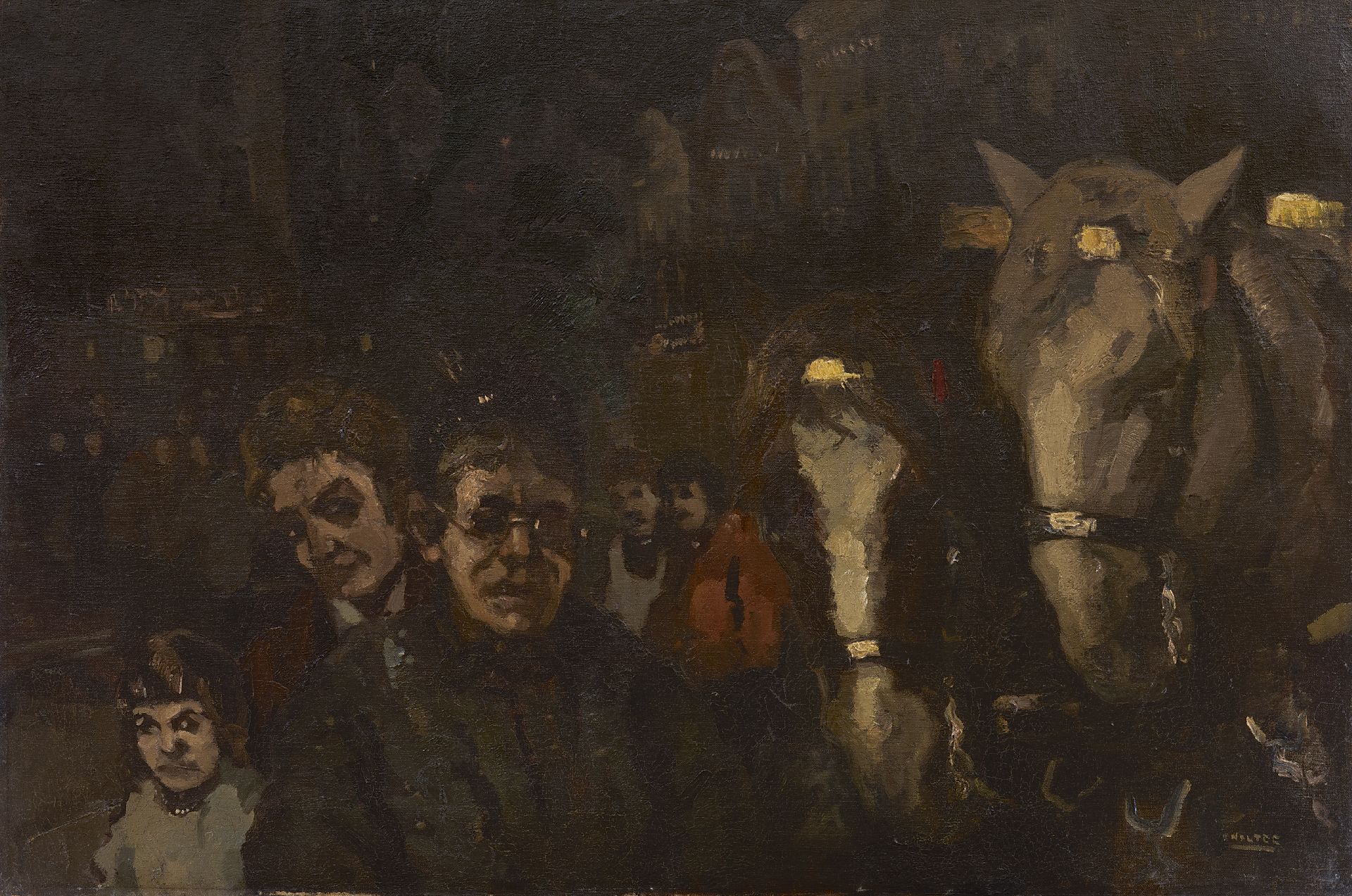 Cor Noltee kunstwerk • schilderij • te koop Figuren en koetspaarden bij avond
