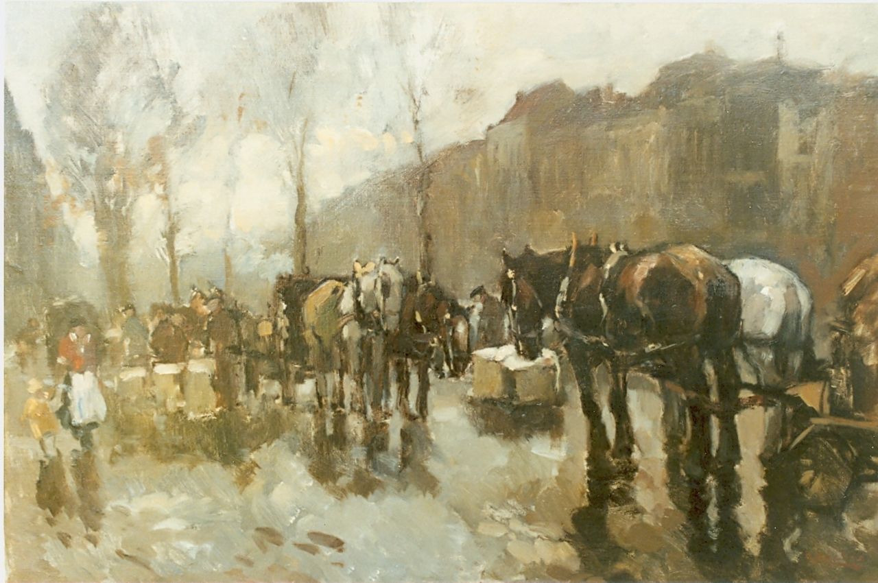 Cor Noltee kunstwerk • schilderij • voorheen te koop Gestationeerde paarden in de stad